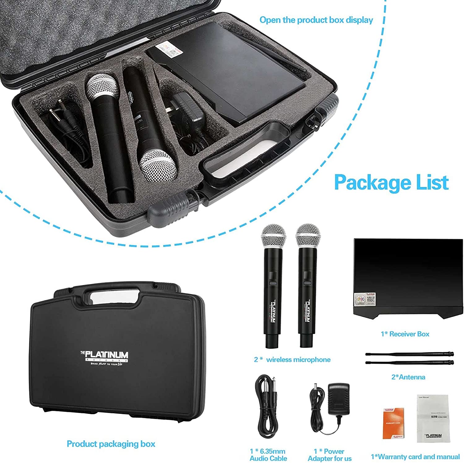 The Platinum Wireless Microphone System, Metal Professional Dual Channel Handheld Dynamic Mic System with Professional Karaoke Receiver, for Party, KTV, Meeting, Wedding, DJ, Church,200ft