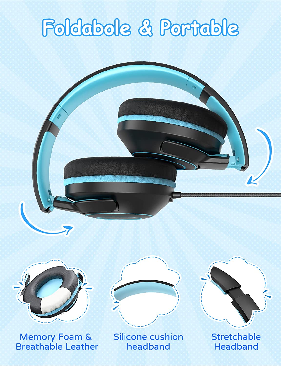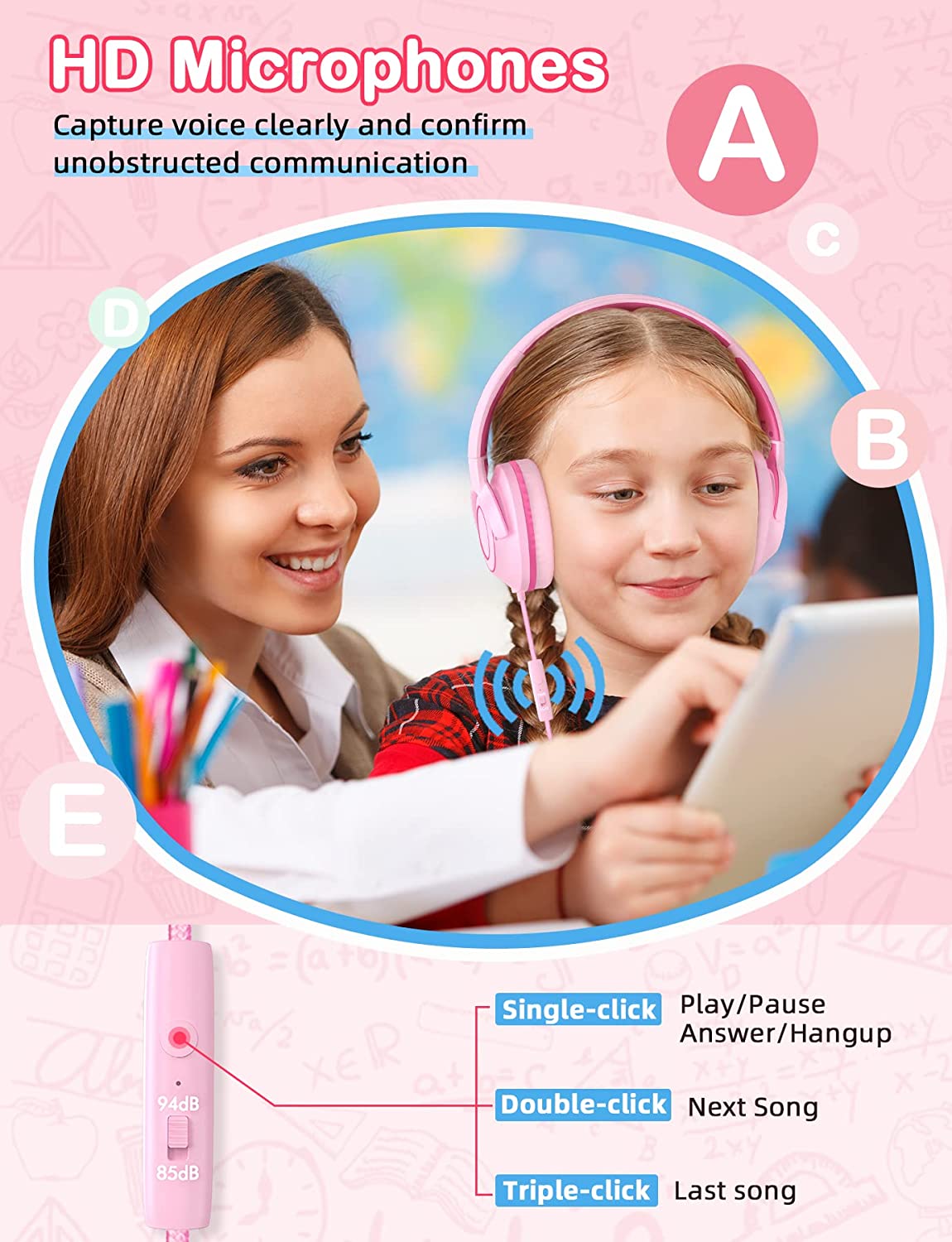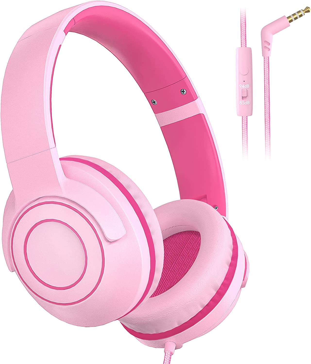 To Protect Kids' Hearing - This kids headphones provides 2-level volume limiter, which protects children's hearing from the harm caused by turning the volume up without any limit. Hence choose the 85dB volume limiter for daily use. If the child is in a noisy environment like car or airplane, please adjust the limiter to 94dB for crystal clear sound.