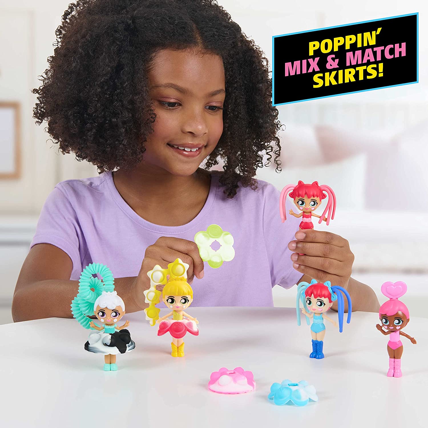 TRADE YOUR FIDGETS. Grow your Fashion Fidgets collection by trading with friends. Collect all Fashion Fidgets with poppable ponytails by trading your fidget dolls with spinning skirts. Fun for every fashionista ages 5 plus.
