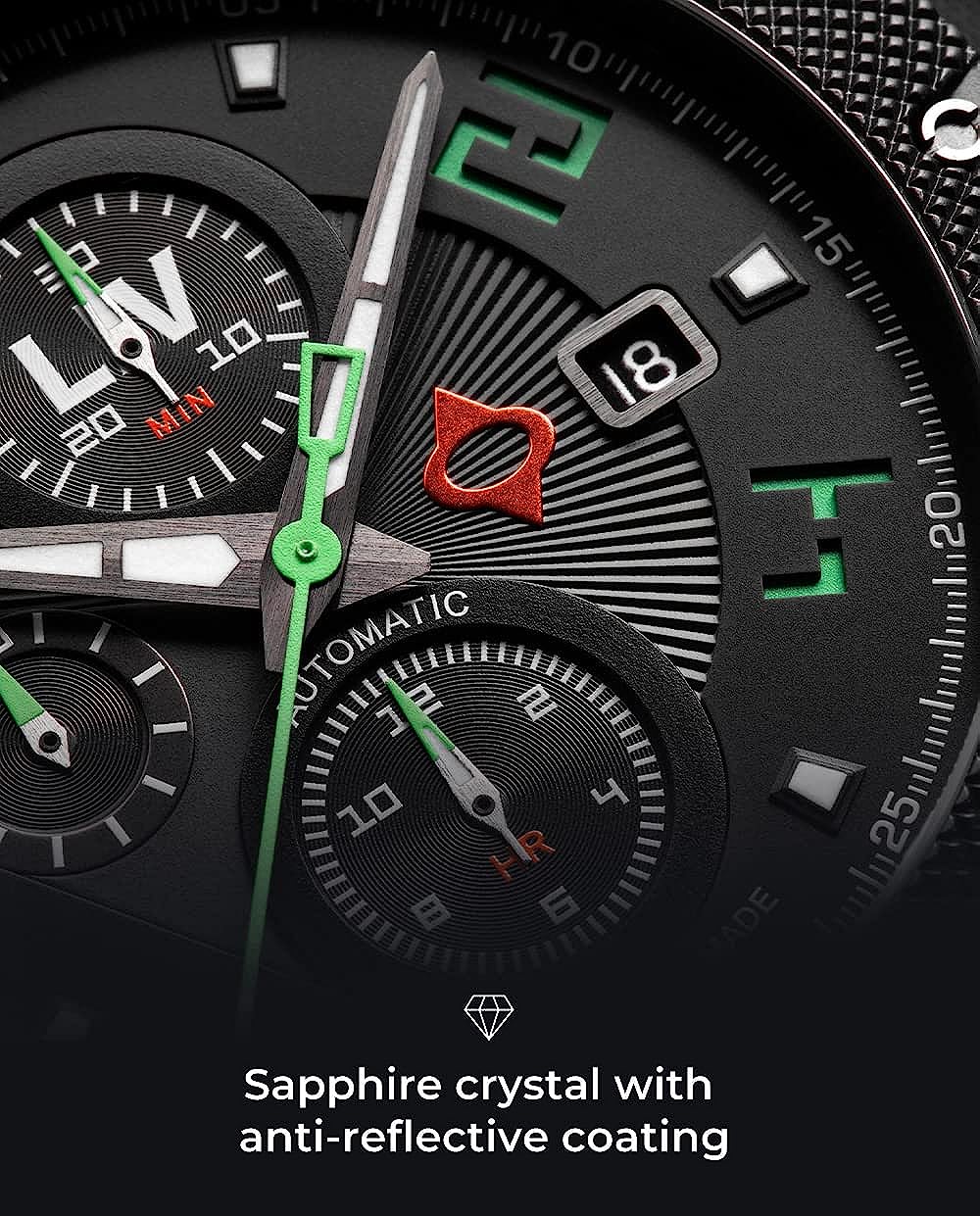 LIV GX-AC Swiss Automatic ETA 7750 26 Jewel Movement Chronograph 46mm 316L Case, 3D Multi-Layer Dial + Quickset Date - Rugged Classic Watch for Men - Skeleton Case-back - Sapphire Crystal - 330 FT Wat