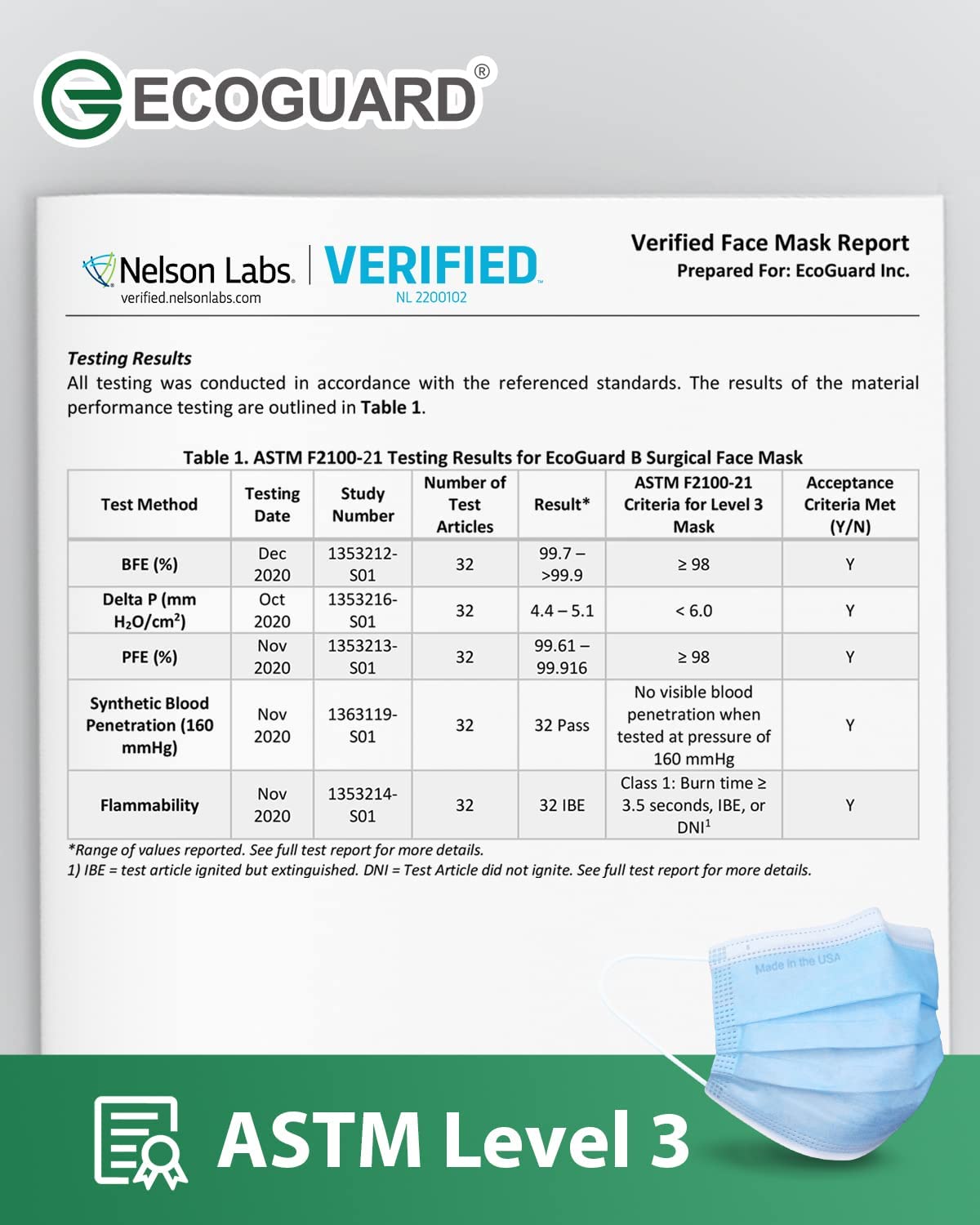 • PROUDLY MADE IN THE USA: Our disposable face masks are manufactured in Grover, NC by EcoGuard Inc, a seasoned and experienced American company that has more than 10-year experience in the industry.