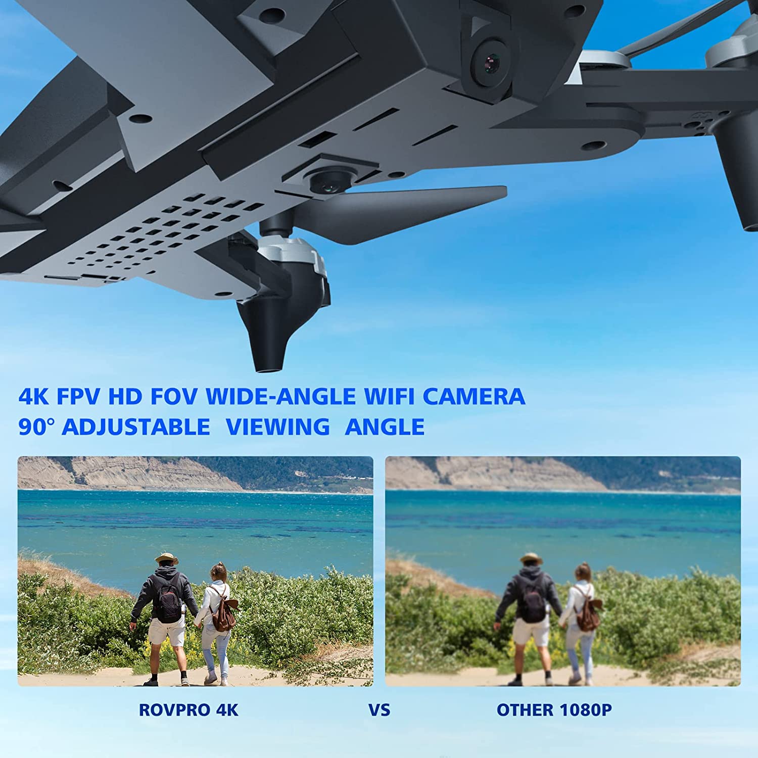 ROVPRO Drone with camera can be controlled by remote control and App.Its 4K WiFi FPV function will bring you high-definition videos and photos from high altitude.