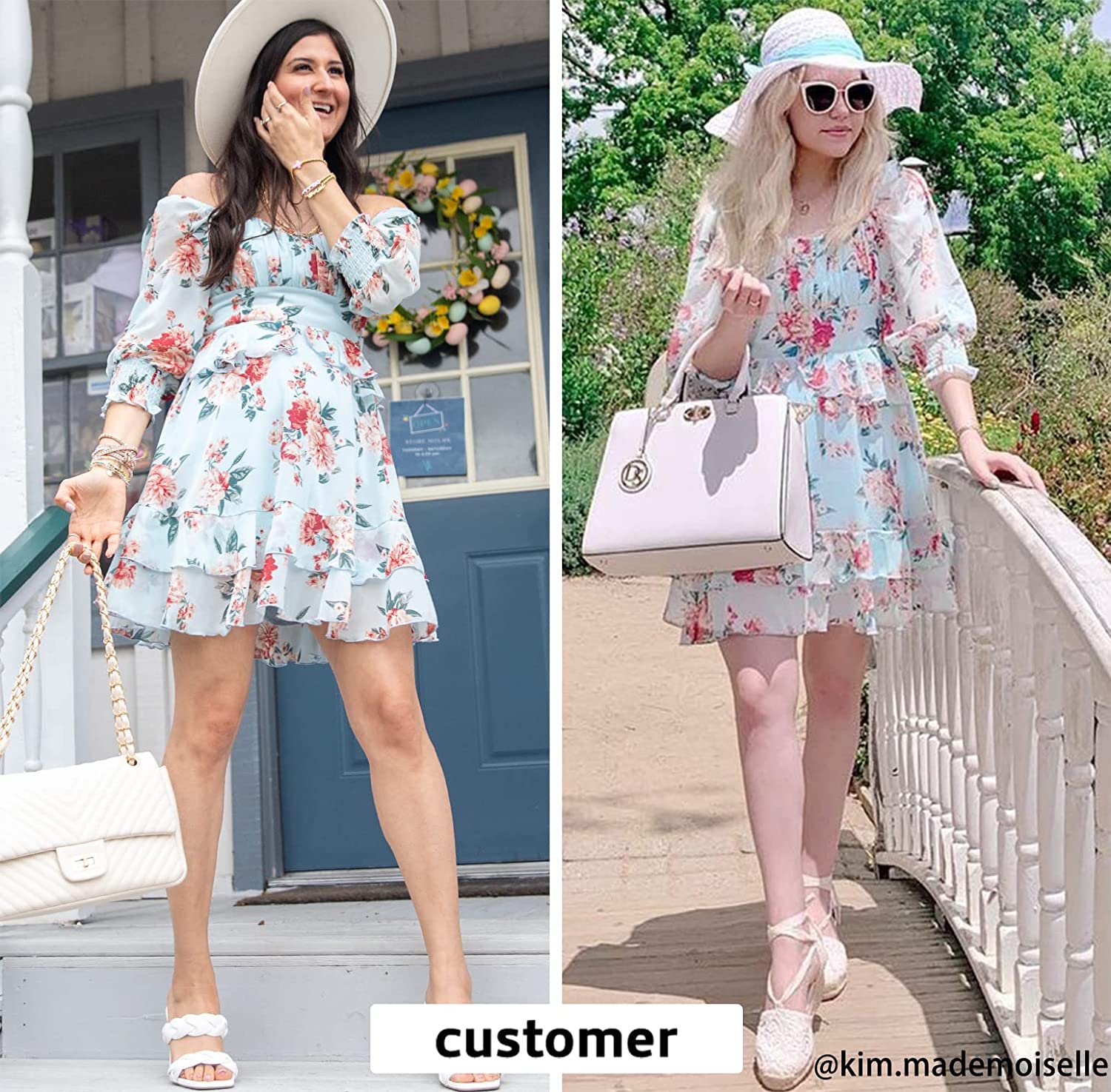 • Feature: Summer dresses for women 2022, The square neck or off shoulder dress adds a sexy touch by showing off your long neck and attractive collarbones as well as provides adequate coverage. The decorative ruffle hem helps camouflage your belly and creates a flattering effect. Additionally, the dress works well on any body shapes for its smocked design. The high waist mini dress produces a lengthening, slimming effect and floral pattern brings a sense of romance and elegance.