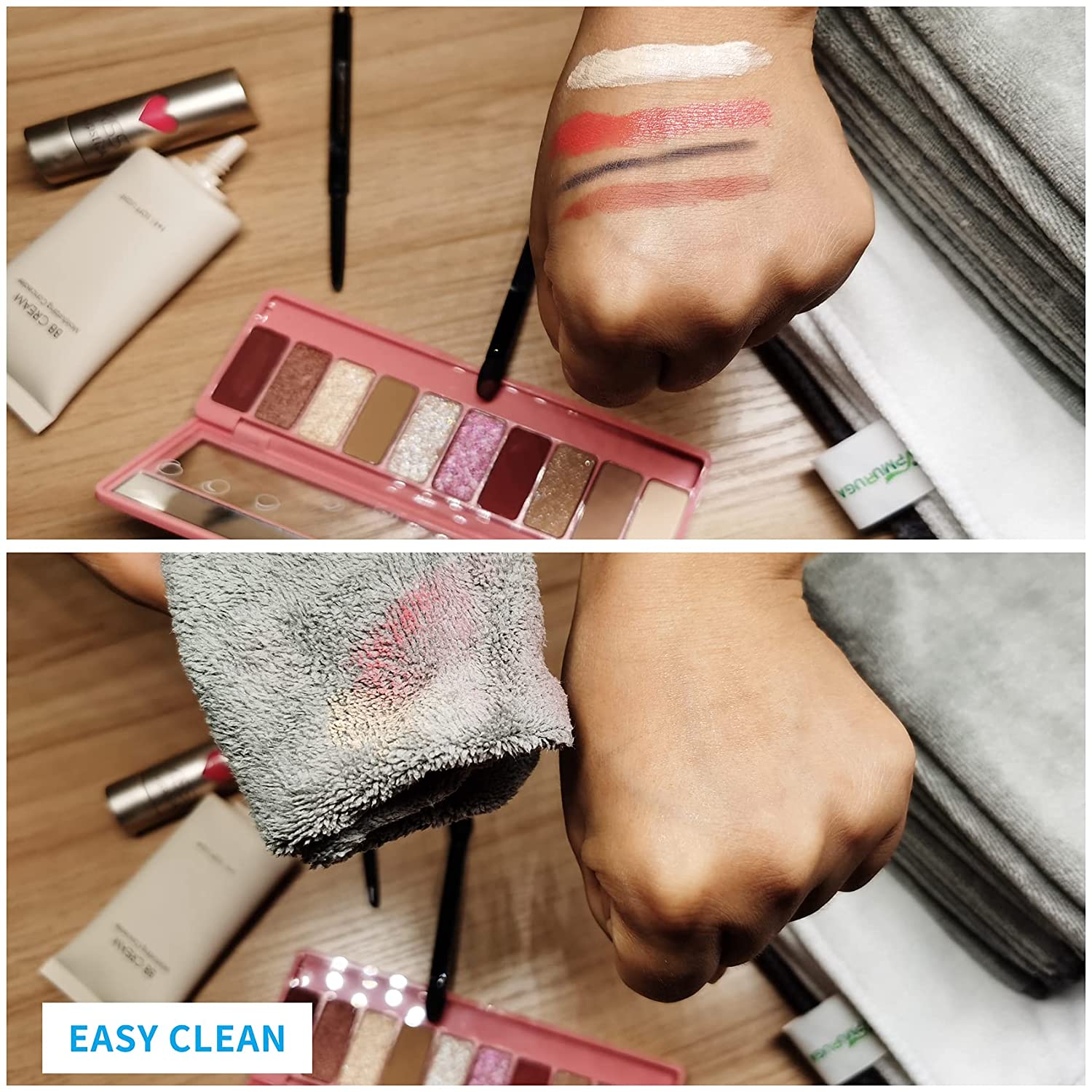 ✓VPMURUGA Easy Clean Microfiber Face Towels- Extra Soft Comfortable and Thick. 400GSM Professional Grade Premium Micro fibre, they are ideal microfiber face cloths for washing face ,erase all makeup with just water.Erase grease,oil and dead skin cells without chemicals,exfoliate the skin. Very effective facial towels .