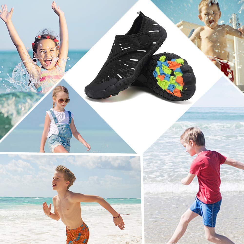 • BREATHABLE ULTRA LIGHT:Our Kids water shoes its upper with stretch breathable ultra light weight fabric for creates a cooler and healthier.