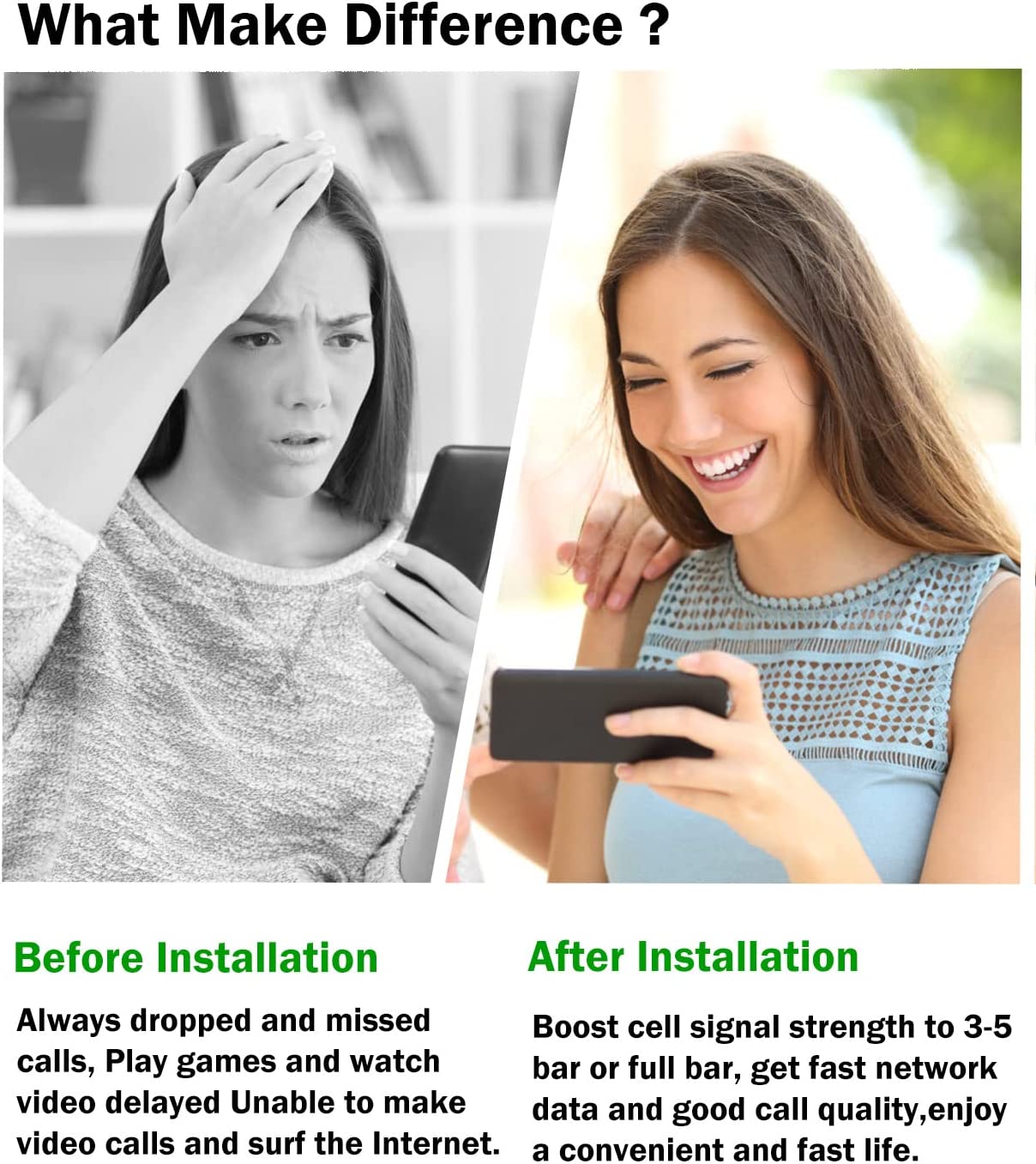 Easy to set up-Provide step-by-step installation instruction. Following the user manual, you can easily set it up. Place It wherever in your building you need improved cellular signal and the amplifier will automatically boost your signal. If you want to install or adjust antennas please turn off the power first.