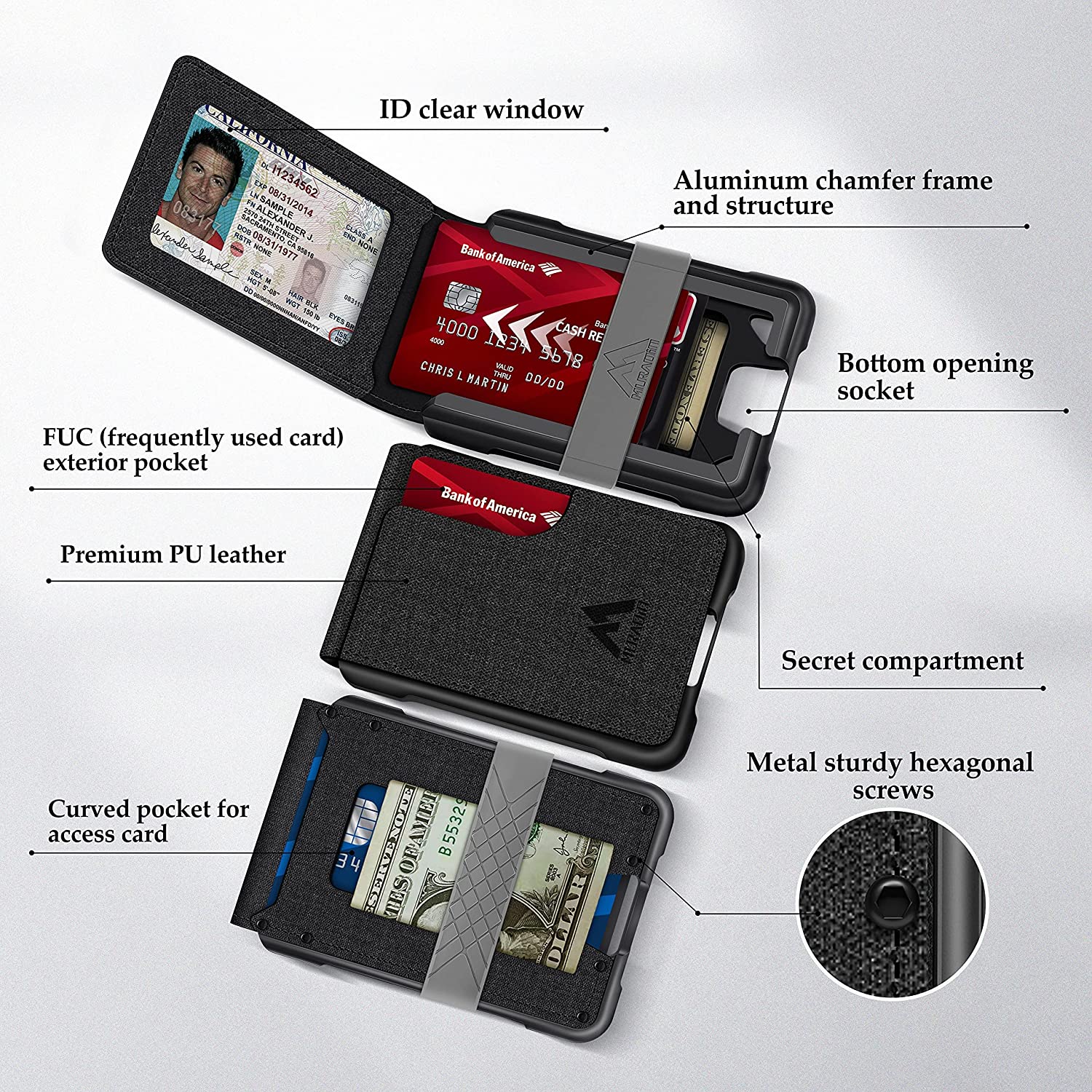 RFID BLOCKING WALLET: You don't have to sacrifice the great looks of a leather credit card wallet for security. RFID blocking protection is given to the MURADIN minimalist wallet due to the metal frame, so you can use it safely as a travel wallet, cards holder, or front pocket wallet.