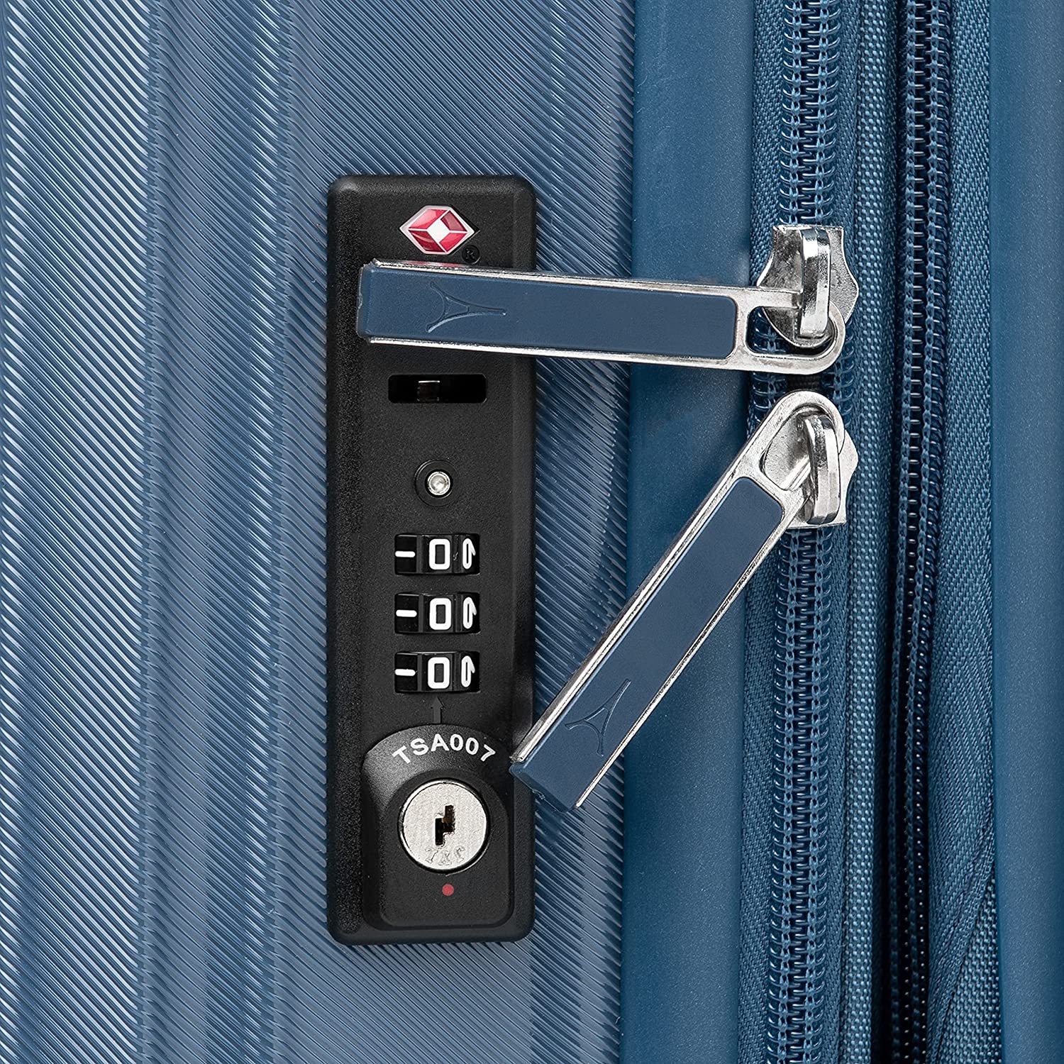 • Lightweight, 100% Polycarbonate hard shell is engineered for impact-absorbing flexibility with a stylish outer finish that helps reduce visible scratches and scuffs. Built-in lock allows TSA authorities to safely unlock and relock the bag for inspection when needed (default code set at 0-0-0)