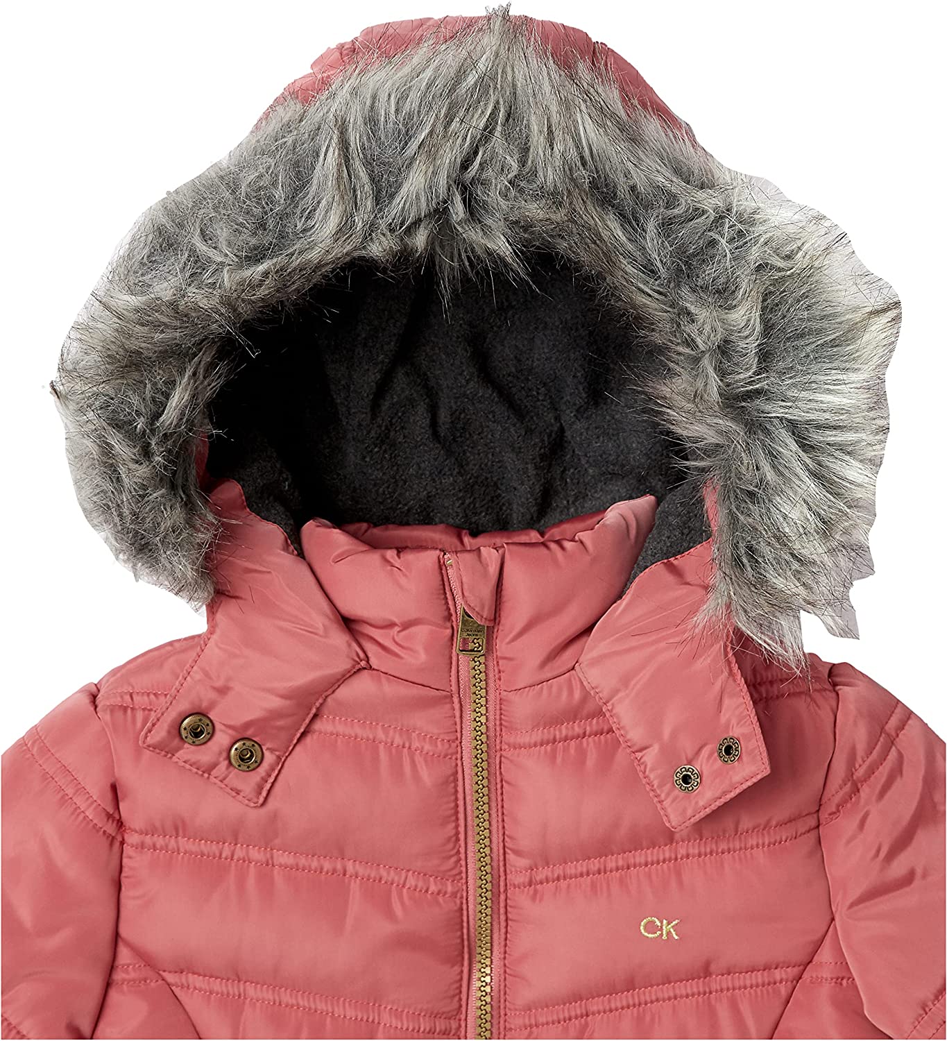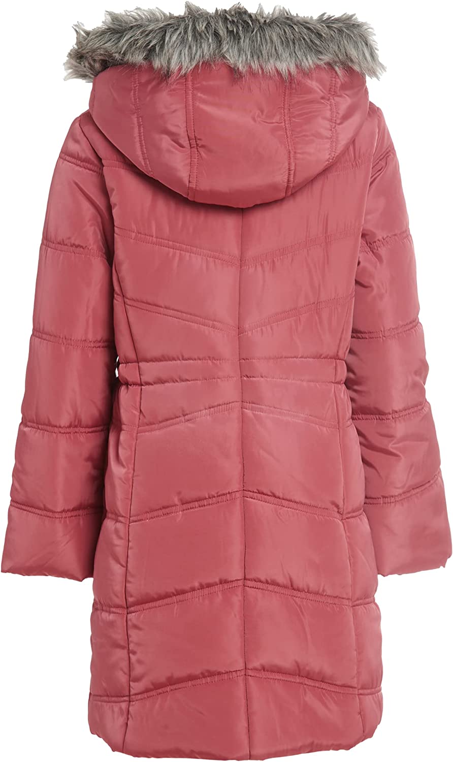 - Features This girls heavyweight jacket is water resistant, 30 inches length , 8 ounce polyfill and micro fleece lining, lurex direct emroidered logo on left chest, faux fur hood, vizlon zipper