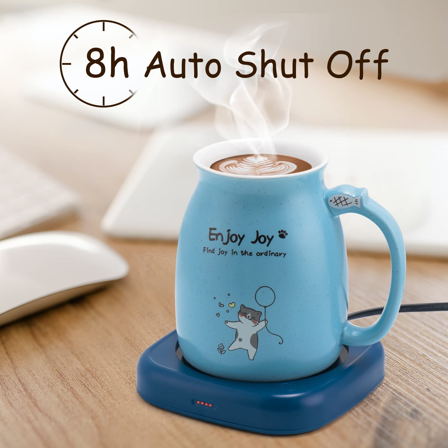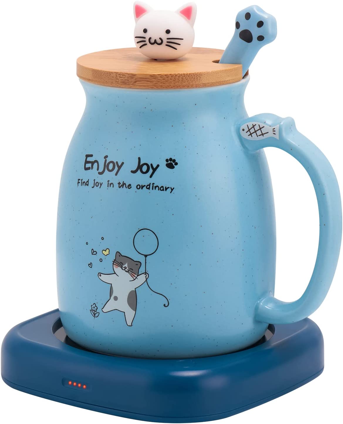Bsigo Smart Coffee Mug Warmer & Cute Cat Mug Set, Beverage Cup Warmer for Desk Home Office, Candle Warmer Plate for Milk Tea Water with Two Temperature Setting(Up to 140℉/ 60℃), 8 Hour Auto Shut Off