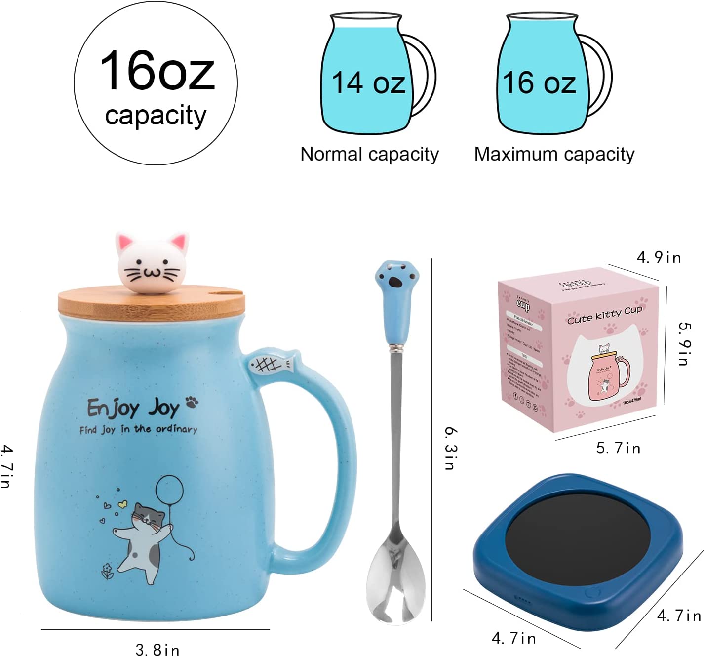 • ☕【Suitable for Most Cups】Our coffee mug warmer comes with a ceramic cat cup and spoon included, also fits for coffee mug, glass cup, stainless steel cup, porcelain cup etc. NOT suitable for plastic cups. We recommend using the cup with a thin-walled, flat bottom for better heating results. Place a kawaii cat lid to cover the mug will also help retain heat.