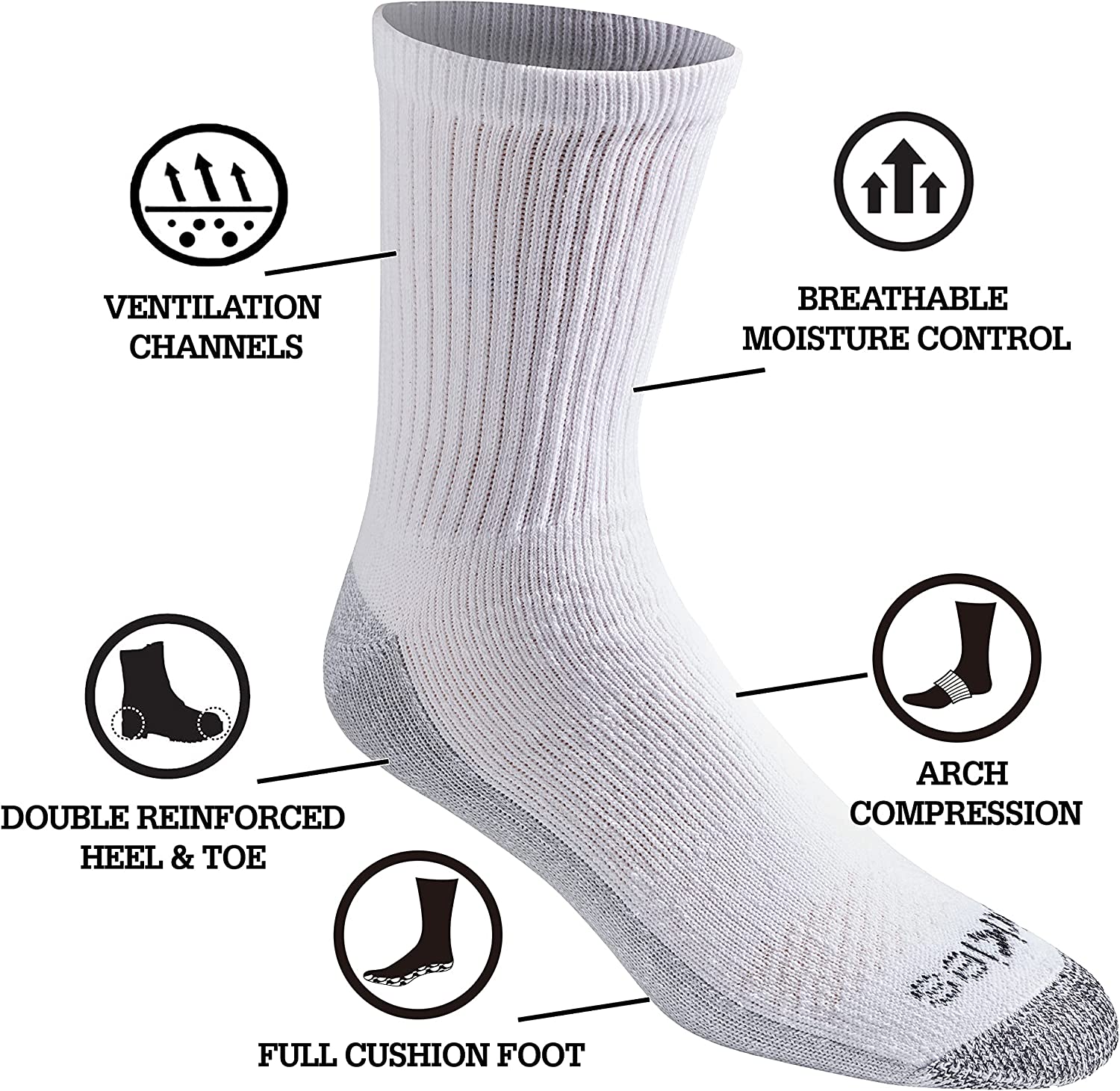 New Dickies Men's Dri-tech Moisture Control Comfort Length Crew Socks 6 and 12 Pairs with 70% Cotton blend better Fit and better value – Dri-tech Control Comfort Length Crew Socks Product, Engineered with Soft Breathable Moisture Control Fibers and Full Cushioned Footbed, Ventilation Channels Enhance Air Flow to Provide Rugged Durability and Comfort, Double Reinforced Heel and Toe, and Arch Compression Support & Stability.
