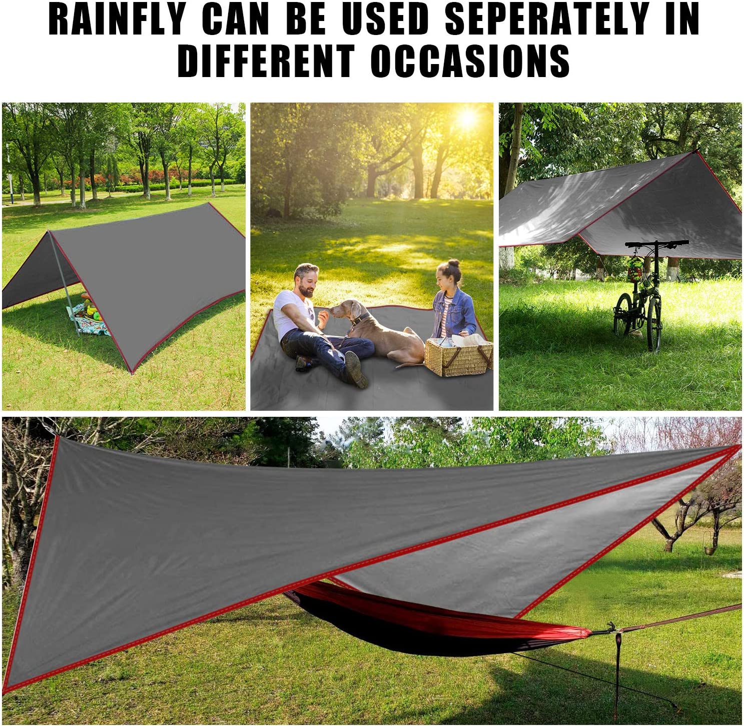 • ☀【Multifunctional Hammock Tent Tarp】: Camping hammock with net and rainfly can protect you from the sun & rain. With this multifunctional tent tarp, your backpacking hammock can be used in sunny and rainy days. As camping gear it can be folded into the storage bag, or use it separately as a tent or picnic mat.