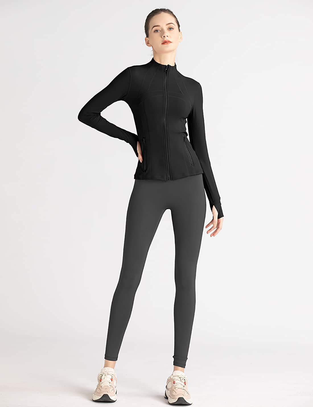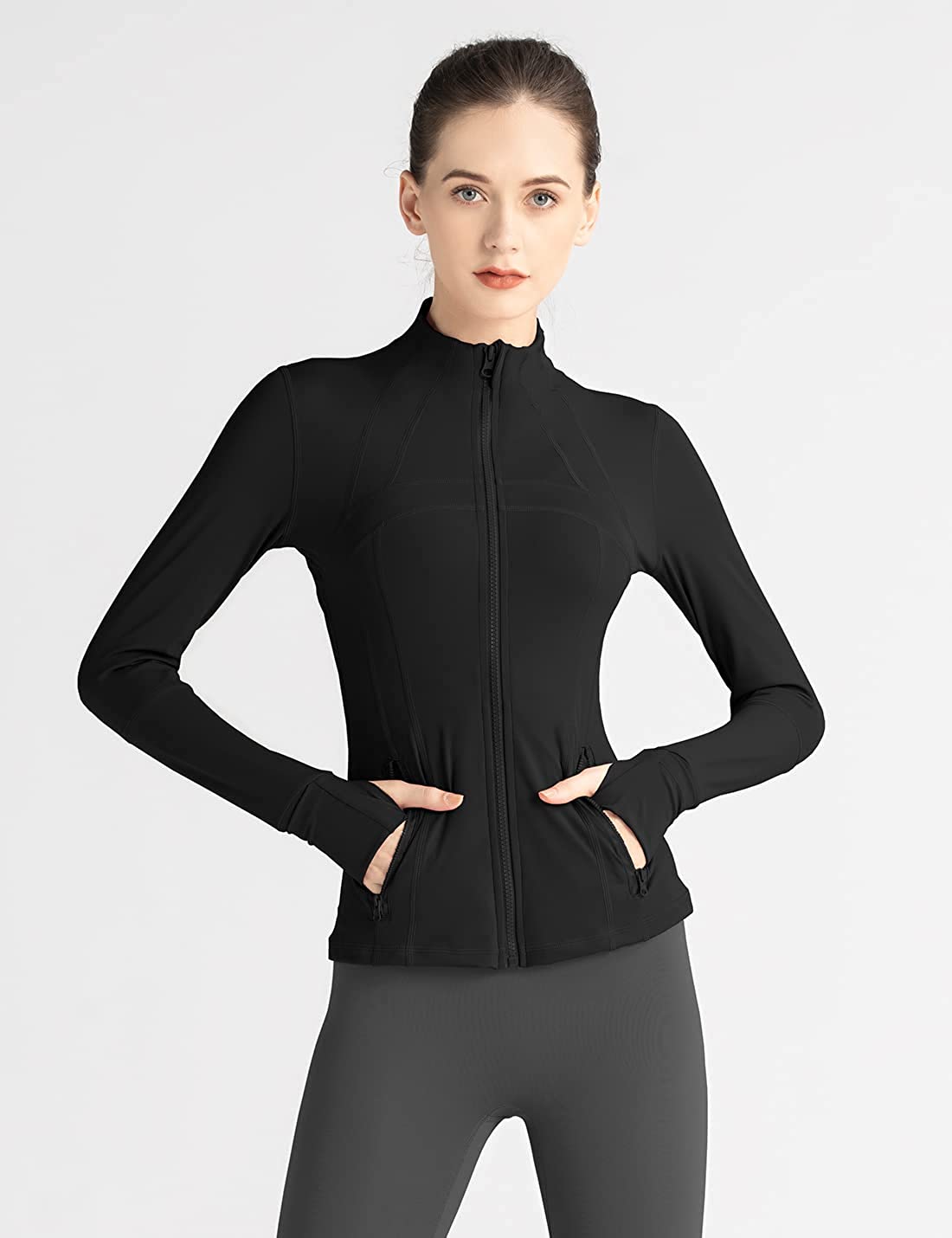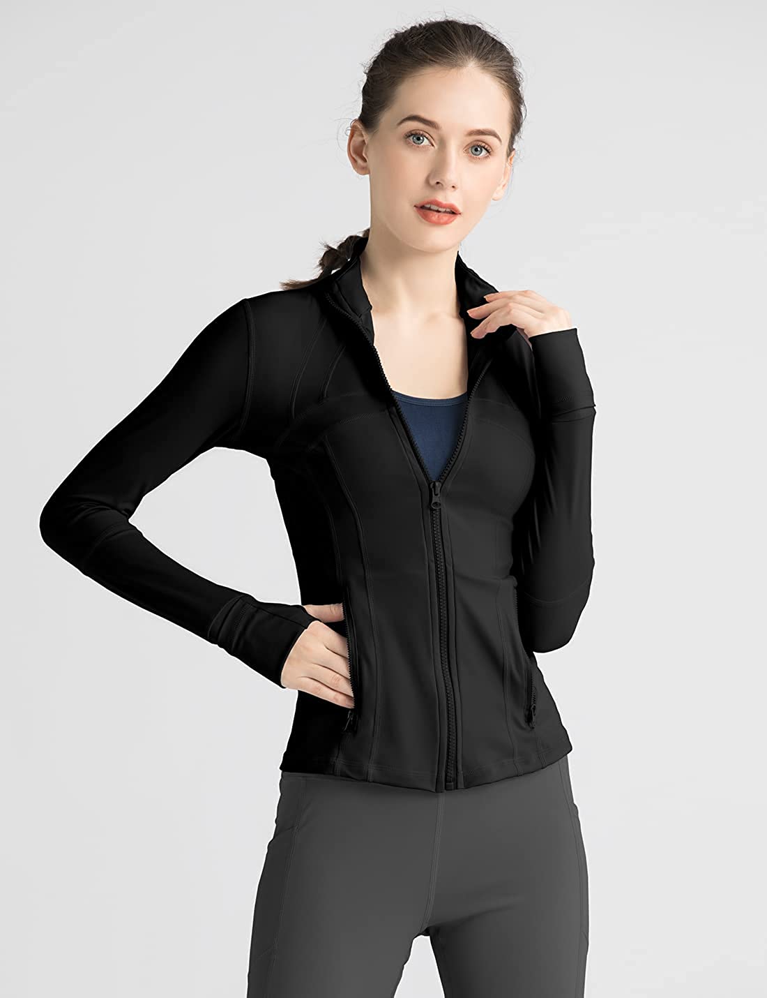 Gacaky Women's Slim Fit Workout Running Track Jackets Full Zip-up Yoga Athletic Jacket with Thumb Holes