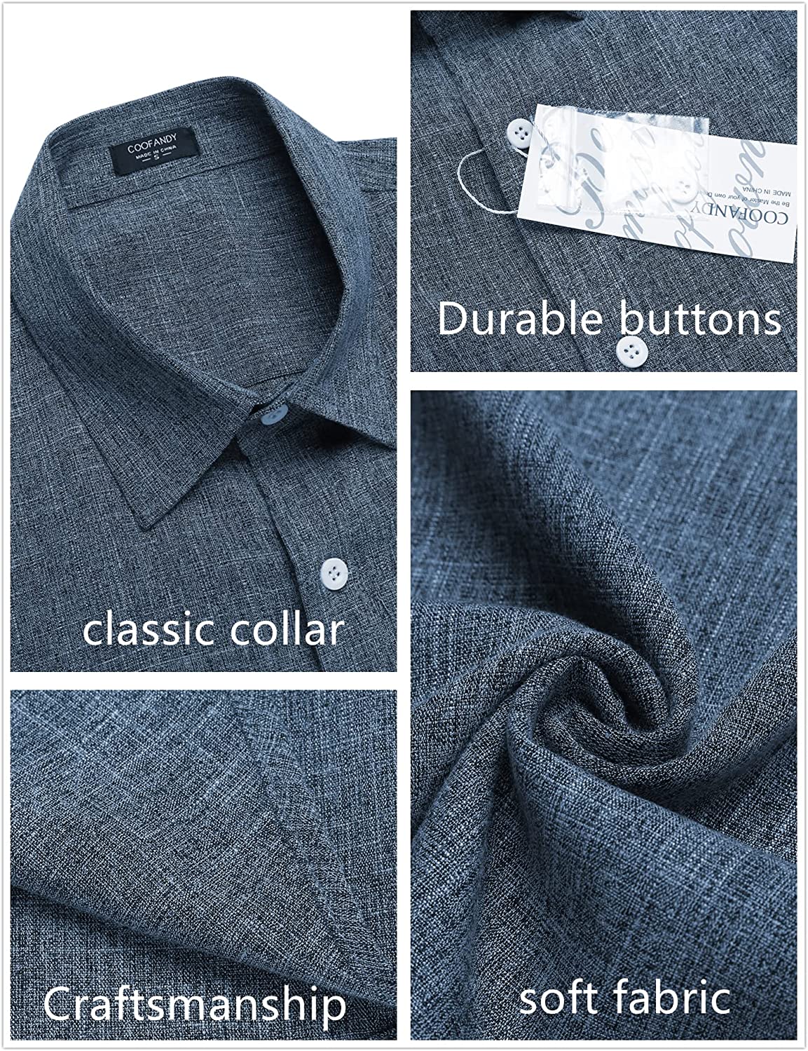 - CLASSIC AND STYLISH LOOKING --- The linen casual business slim fit button down shirts for men have the exquisite craft, lightly tapered through the waist for a tailored look. Match with solid t-shirts, or suit sportcoat blazer, chino pants, jeans and shorts to round out your look.