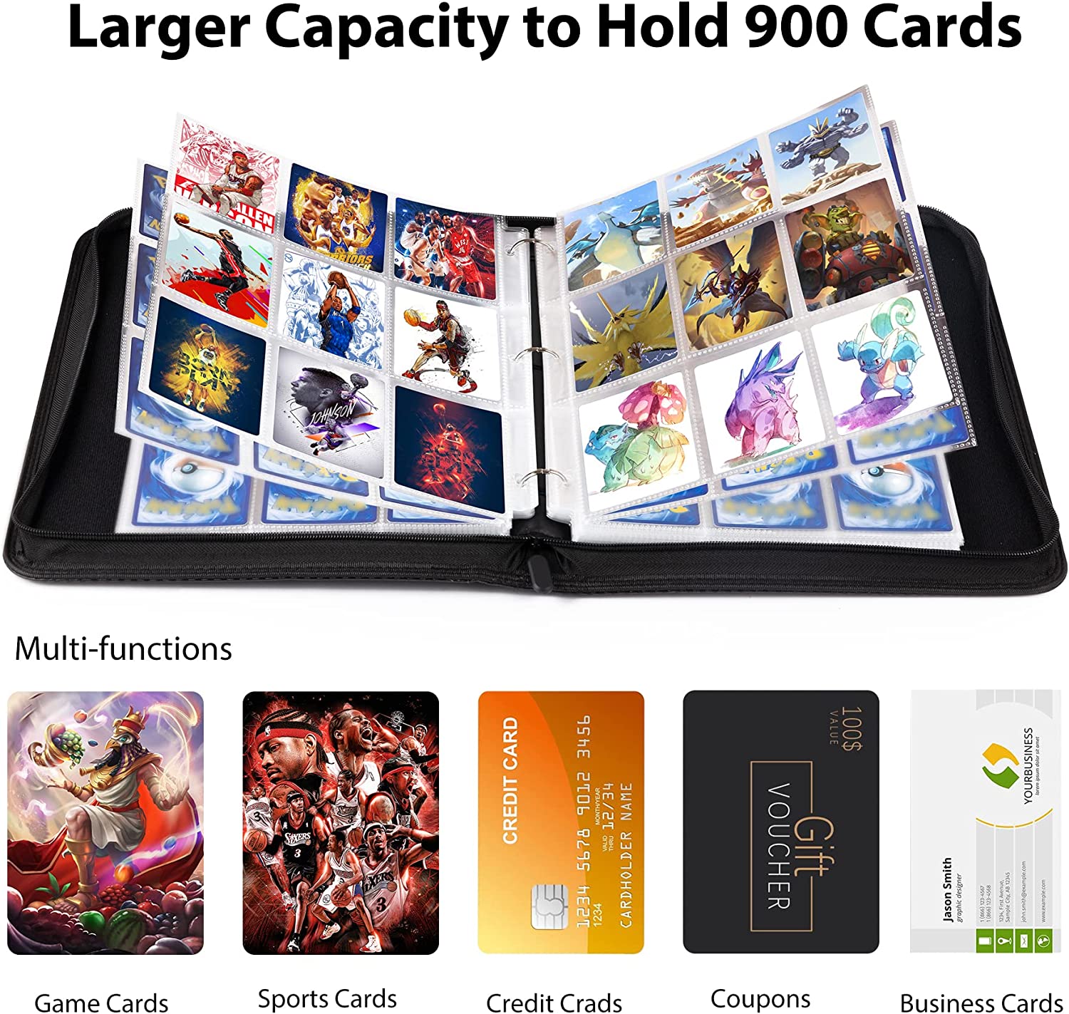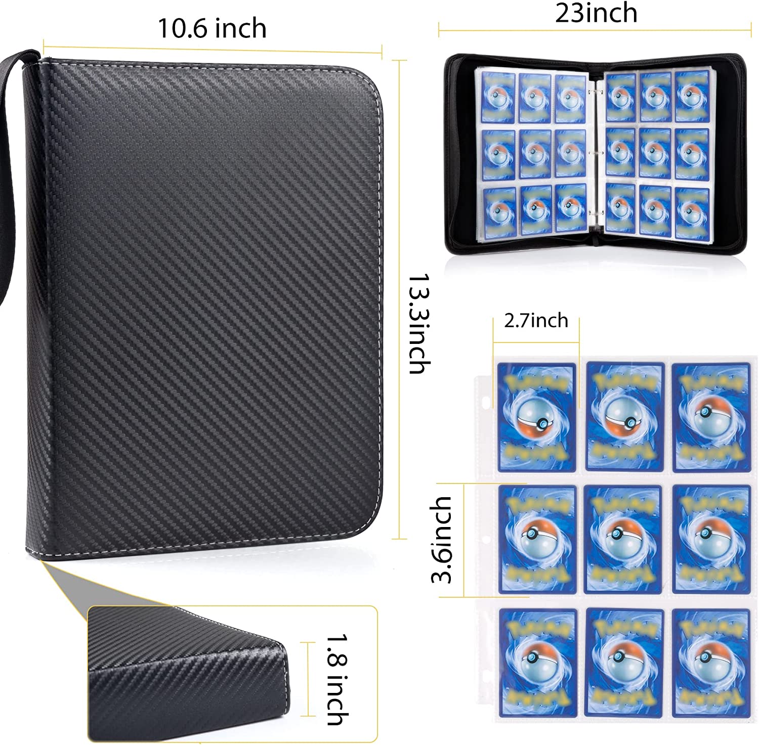 • ?【Huge Storage Space】 WOT I 9-pockets card binder comes with 900 card pockets, including 50 removable card sleeves(double-side pocket). it will hold and protect more of your valuable and cherished cards. With size of 3.6x2.7in, each pocket hold up to 2 1/2 x 3 1/2 cards and other standard cards, ensures your favorite cards securely stored and neatly organized.