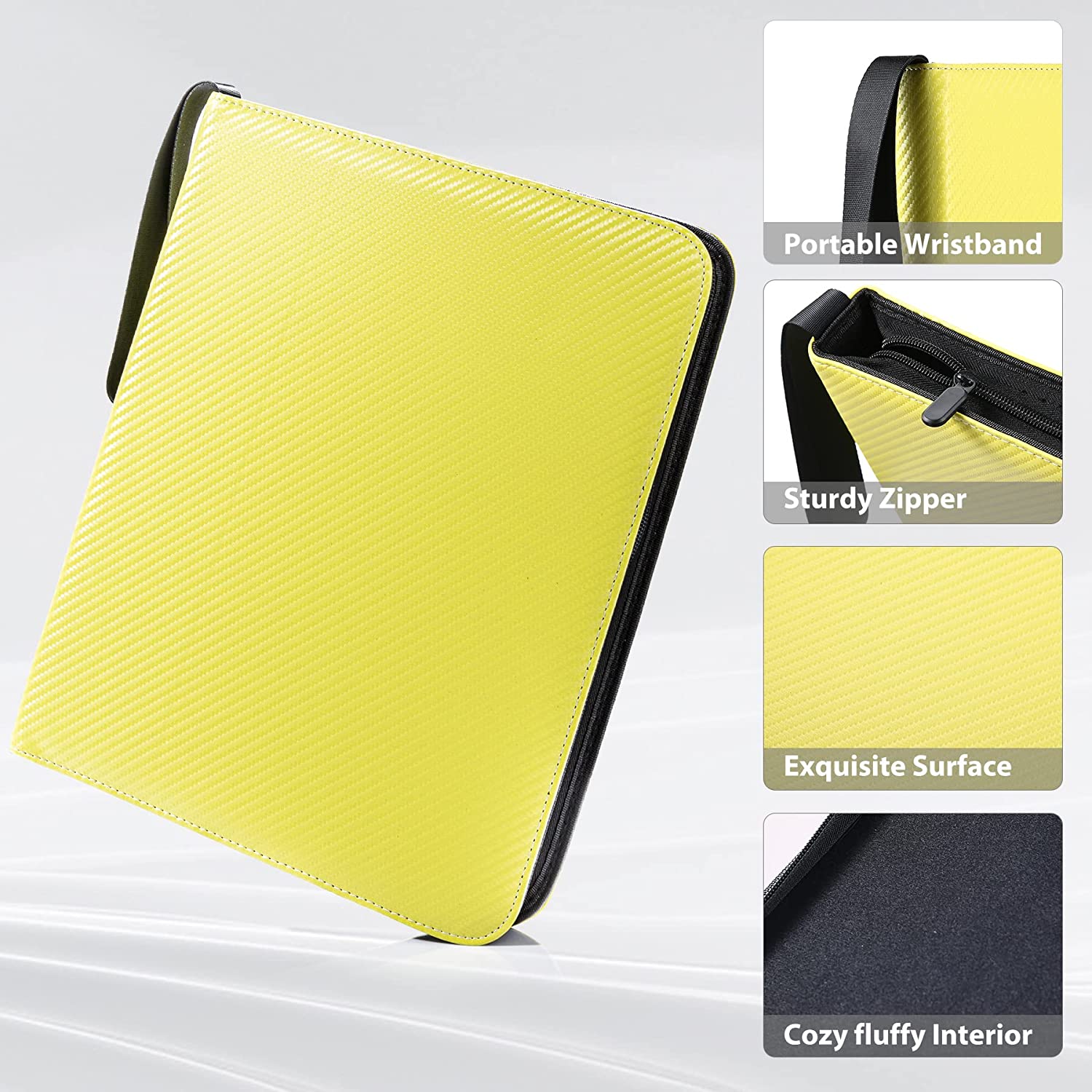• ?【Full Protections】 Top-loading design of card sleeves are conducive for card insertion and prevent your cards from falling or beverage infiltration. Smooth zipper benefits to zip up or expand, again preventing card from slip off and protecting privacy. Portable wristband supports you to take the card binder wherever you need. Comprehensive Details.