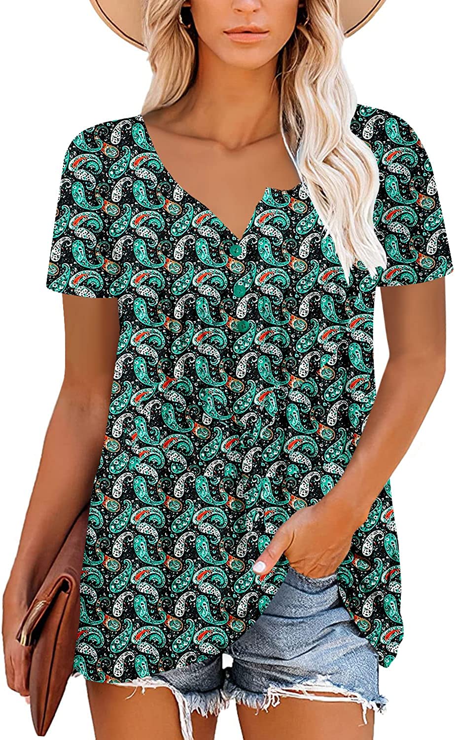 Feature:Womens Casual V neck short sleeve blouse tops, floral print,ruffle design,loose fit,trendy and elegant.