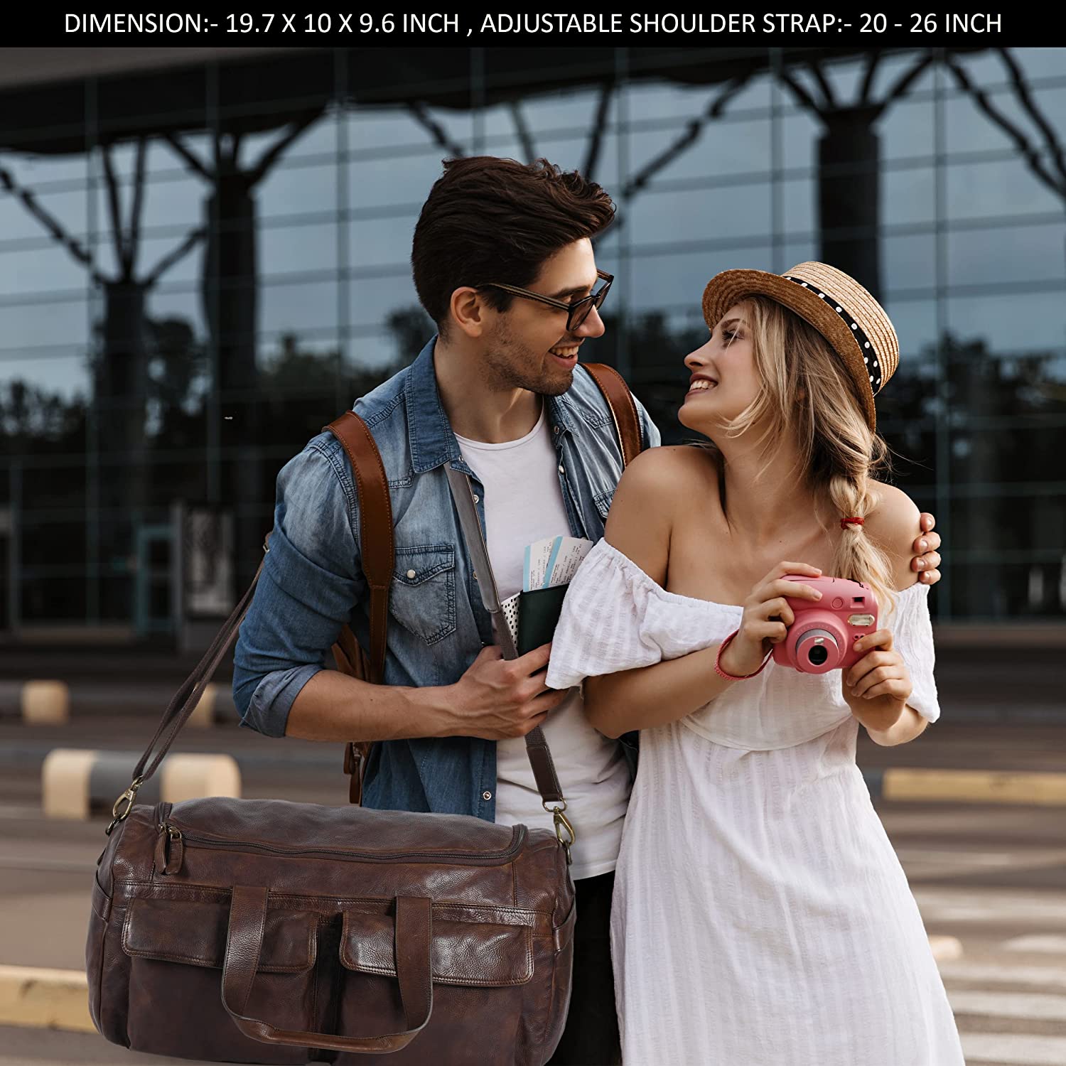 • High Quality Leather Duffel Bag:Top Grain leather and strong stitching make this bag a durable partner for you travels. A partner that ages well with you. It develops a unique relationship with you by developing patterns that are unique to your usage style. Our vintage design brings the essence of class to your style statement.