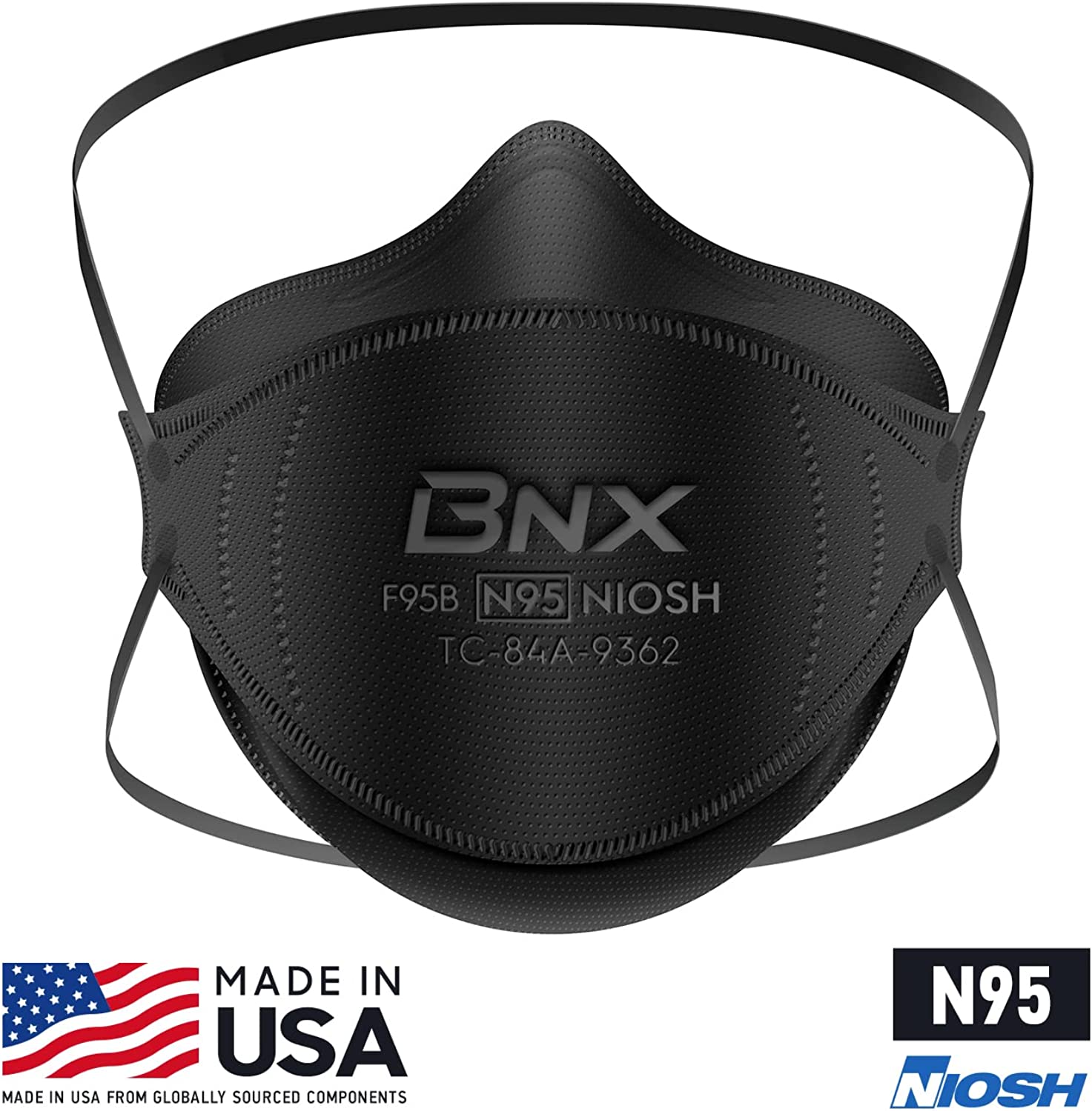 BNX N95 Mask Black NIOSH Certified MADE IN USA Particulate Respirator Protective Face Mask, Tri-Fold Cup/Fish Style, (10-Pack, Approval Number TC-84A-9362 / Model F95B) (Headband) Black