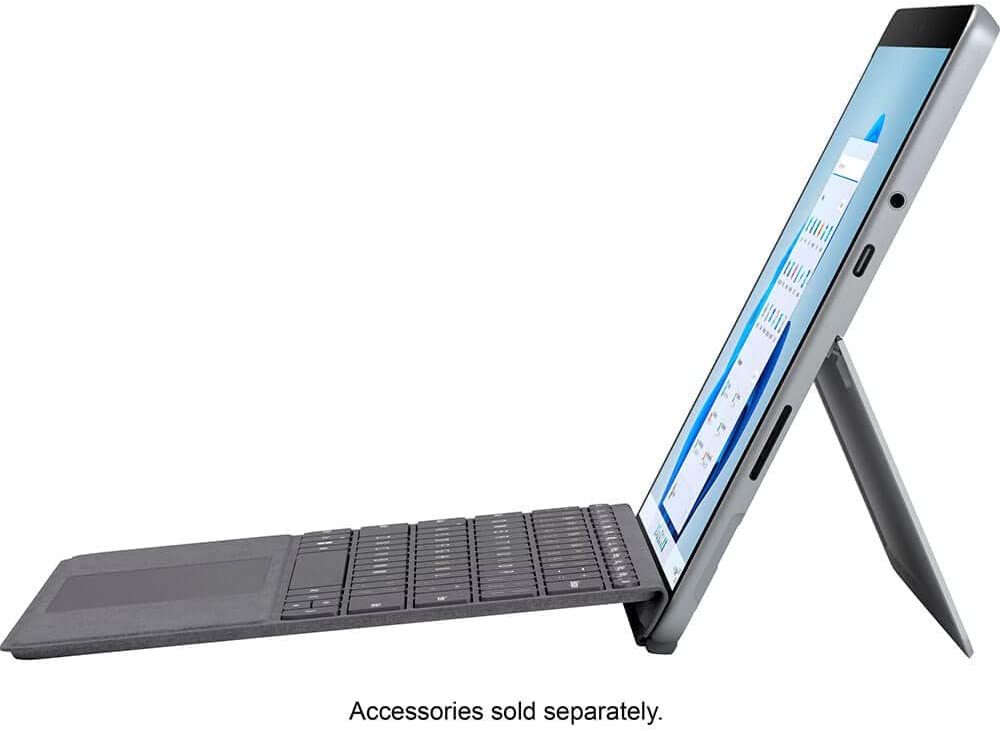 * Some accessories and software sold separately. Available colors and materials may vary by market and configuration. 1. Up to 11 hours of battery life based on typical Surface device usage. Testing conducted by Microsoft in August 2021 using preproduction software and preproduction configurations of Surface Axton. Testing consisted of full battery discharge with a mixture of active use and modern standby. The active use portion consists of (1) a web browsing test accessing 8 popular websites over multiple open tabs, (2) a productivity test utilizing Microsoft Word, PowerPoint, Excel and Outlook, and (3) a portion of time with the device in use with idle applications. All settings were default except screen brightness was set to 150nits with Auto-Brightness disabled. Wi-Fi was connected to a network. Tested with Windows Version 11.0.22000.9 (21H2). Battery life varies significantly with settings, usage and other factors. (4) Weight not including Surface Go Type Cover. (5) Requires Microsoft 365 subscription, sold separately. (6) Windows Defender version 4.12 & 4.18 scored 100% detection for protection against 0-day malware attacks, inclusive of web and e-mail threats (Real-World Testing) by AV-Test, July and August, 2019. (7) OneDrive PC folder backup feature must be enabled by user and files must be saved in Desktop, Pictures, or Document folders available on Windows PC’s only.