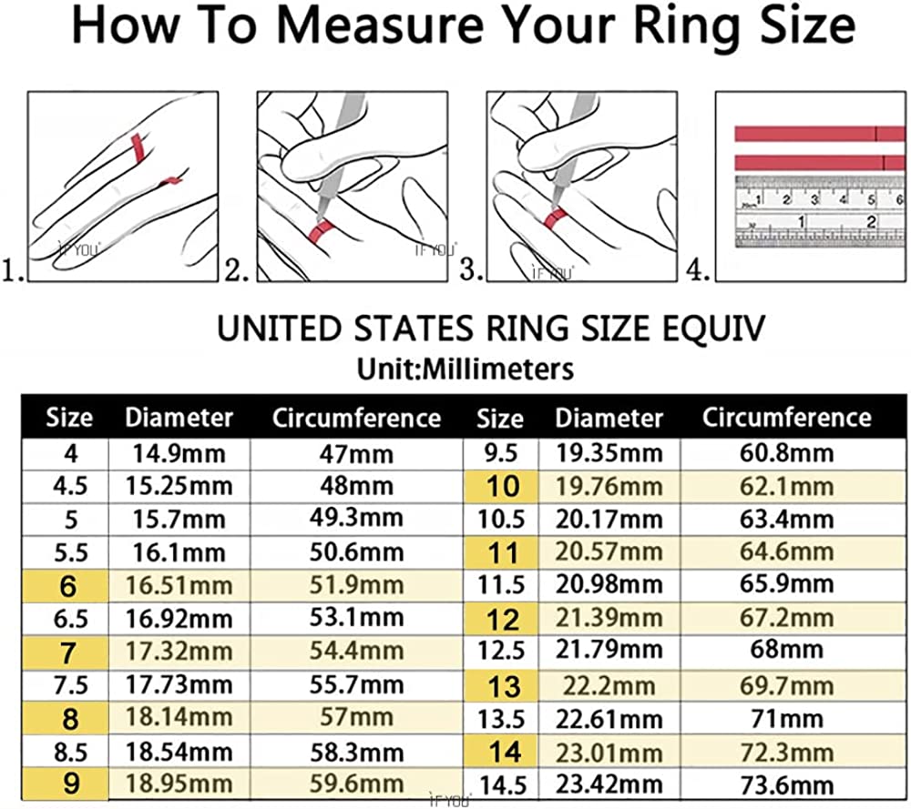 ✔️Ring Size: 7(17.32mm), 8(18.14mm), 9(18.95mm), 10(19.76mm), 11(20.57mm)