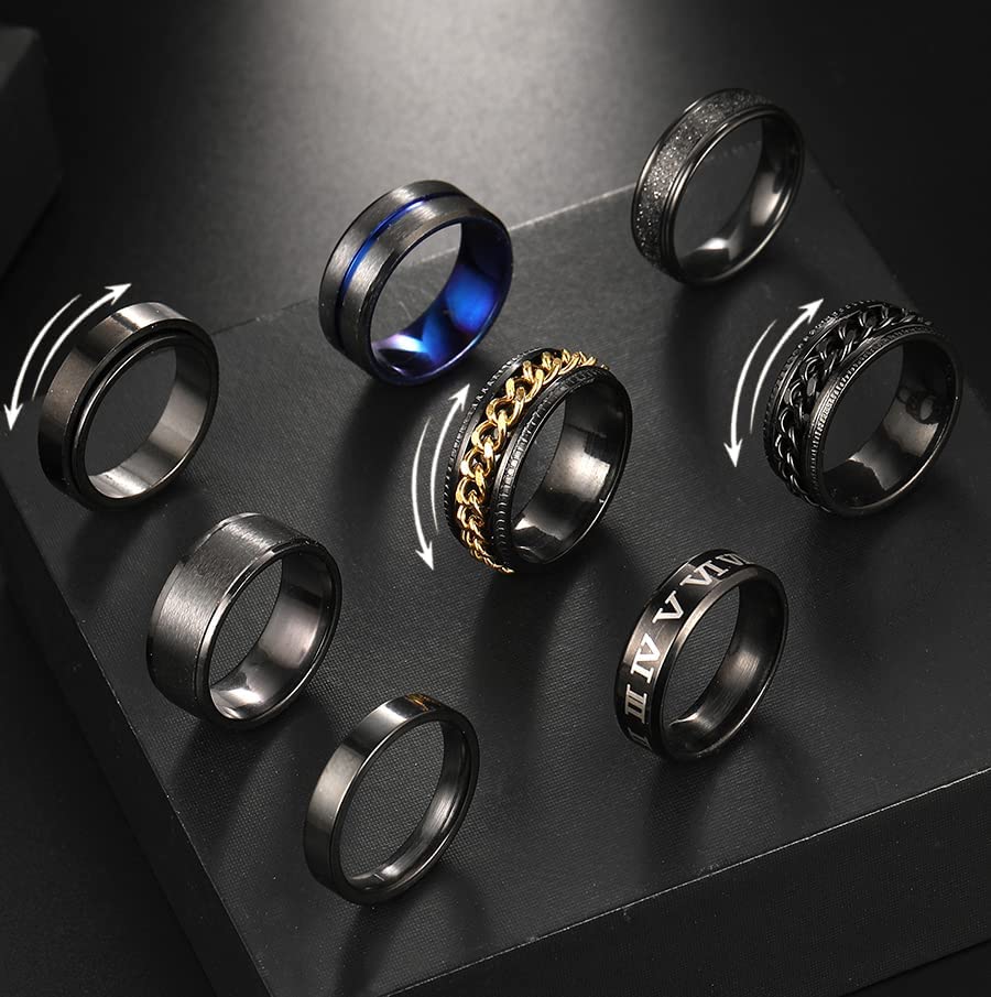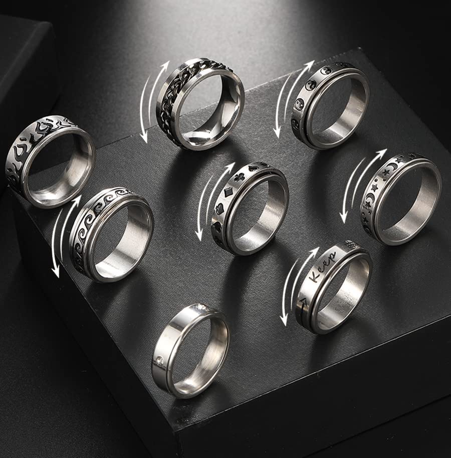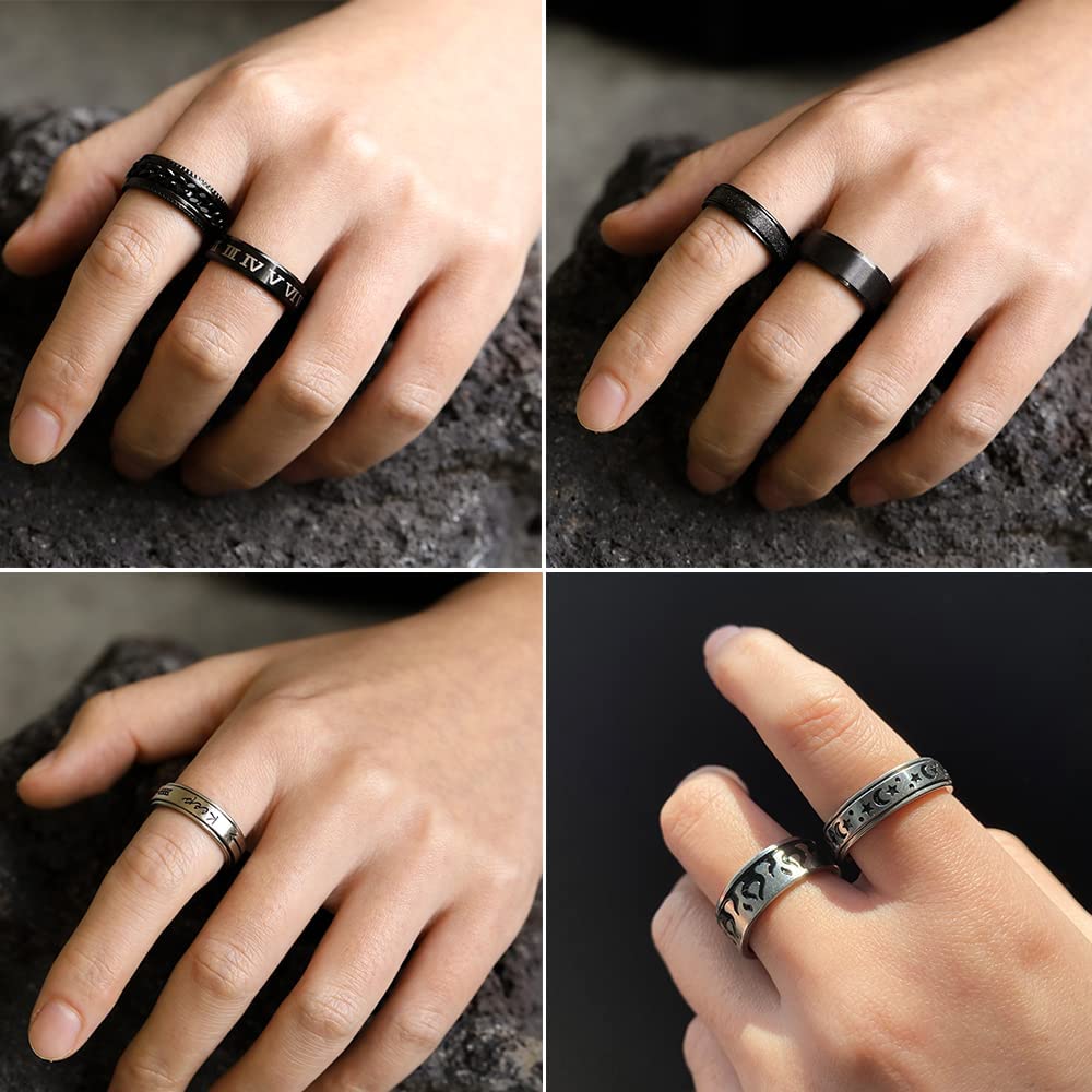 Stainless Steel Fidget Rings for Men, Sliver Fidget Rings for Anxiety for Women, Cool Spinner Ring Set, Black Mens Wedding Band Ring Pack