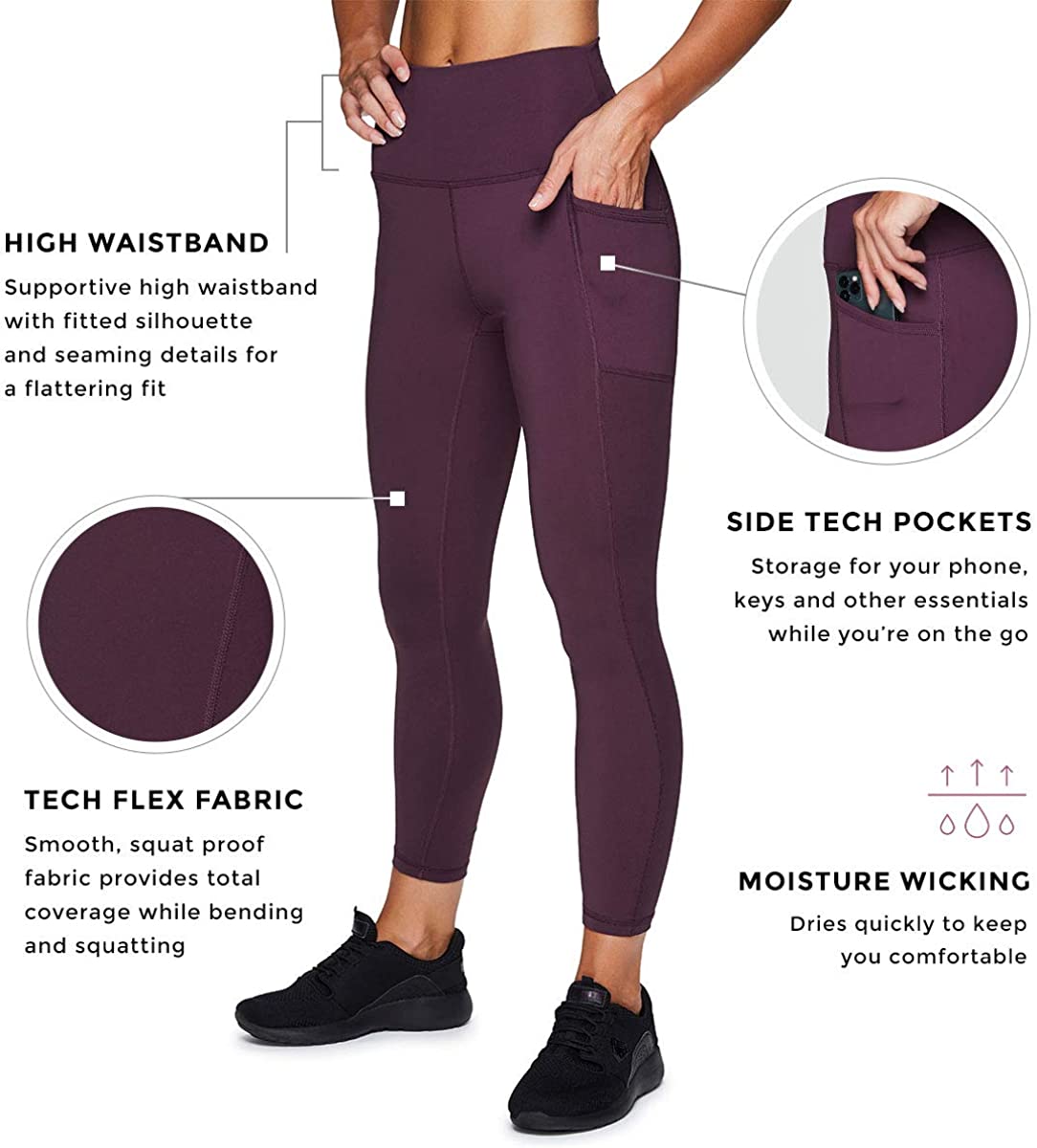 MULTIPLE LENGTHS AND COLORS FOR EVERY ACTIVITY - From full length to 7/8 ankle length to capri in a variety of colors from black to pink, RBX Active makes workout leggings and clothing for active women everywhere for yoga, running, gym workouts or simply lounging around the house in your athleisure gear.