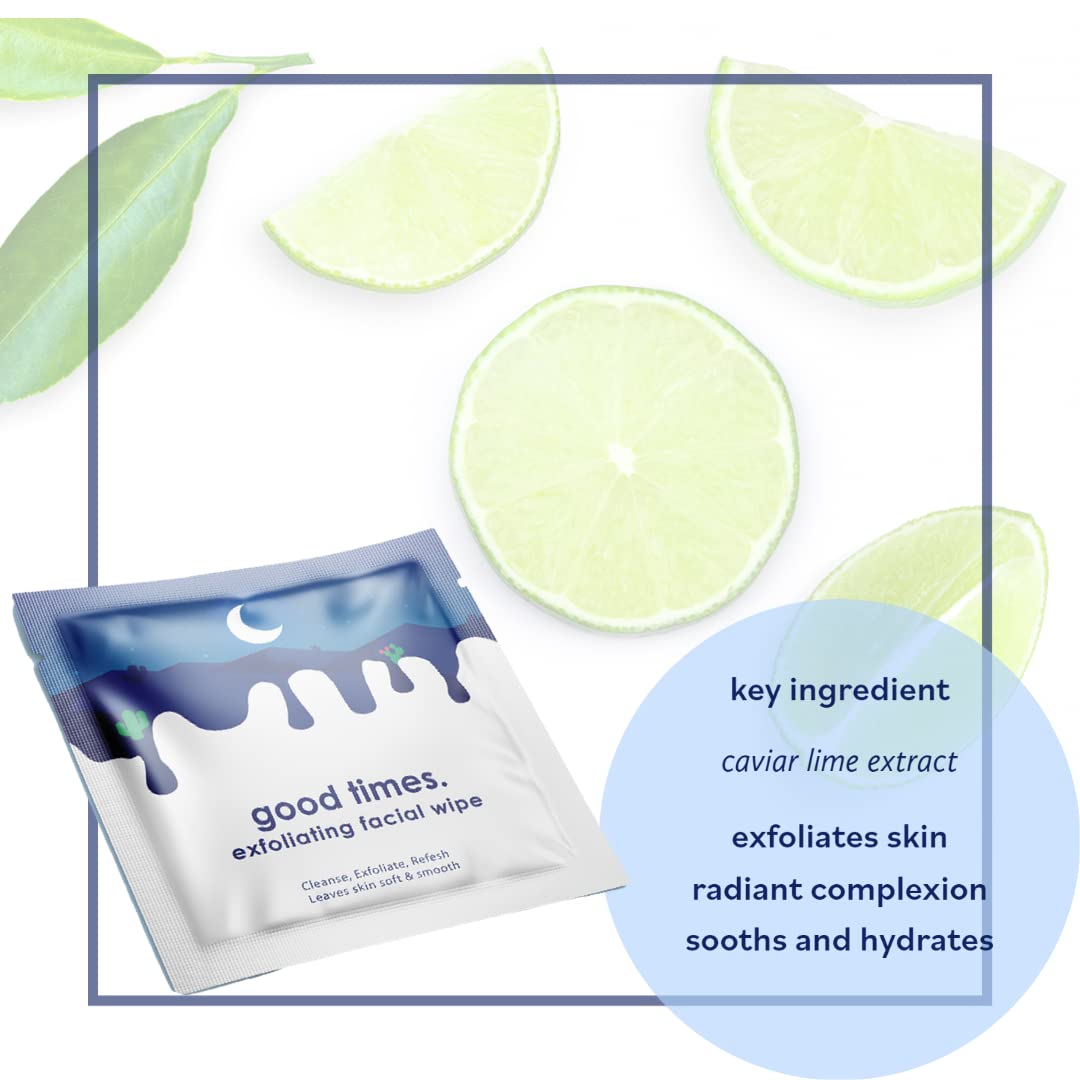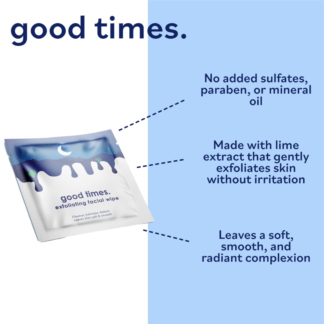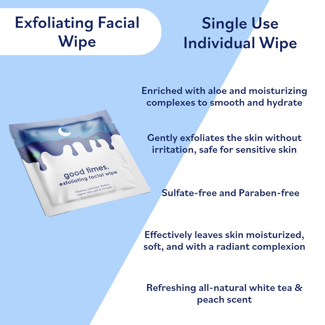 Eco-Beauty good times Waterless Daily Gentle Exfoliating Face Wipes Individually Wrapped Pre-Moistened Packet Cleanse, Exfoliate, Soothe and Hydrate (20 Wipes)