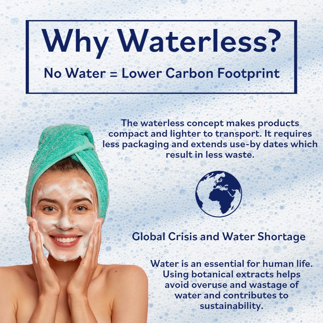 • WATERLESS TECNIQUES: Replace water with cucumber hydrosol to promote the actives ingredients benefits. Reduce water usage up to 80% in response to the urgency of the global crisis on water shortage.