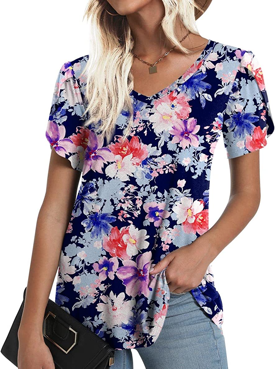 ❤ 【 Features 】 casual tunic top, v neck tops tee, petal short sleeve tshirts, stretch loose blouse, solid color and print, on the hip length, sexy, plain, trendy and elegant.