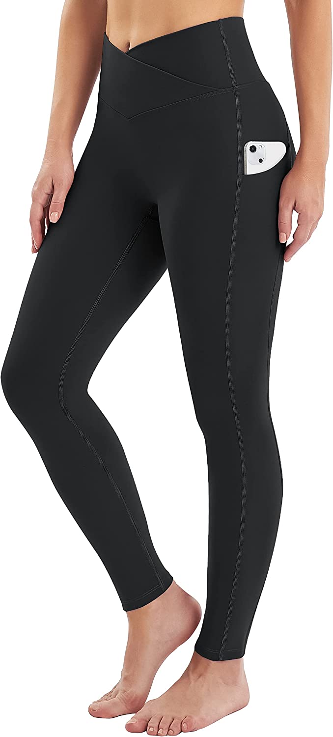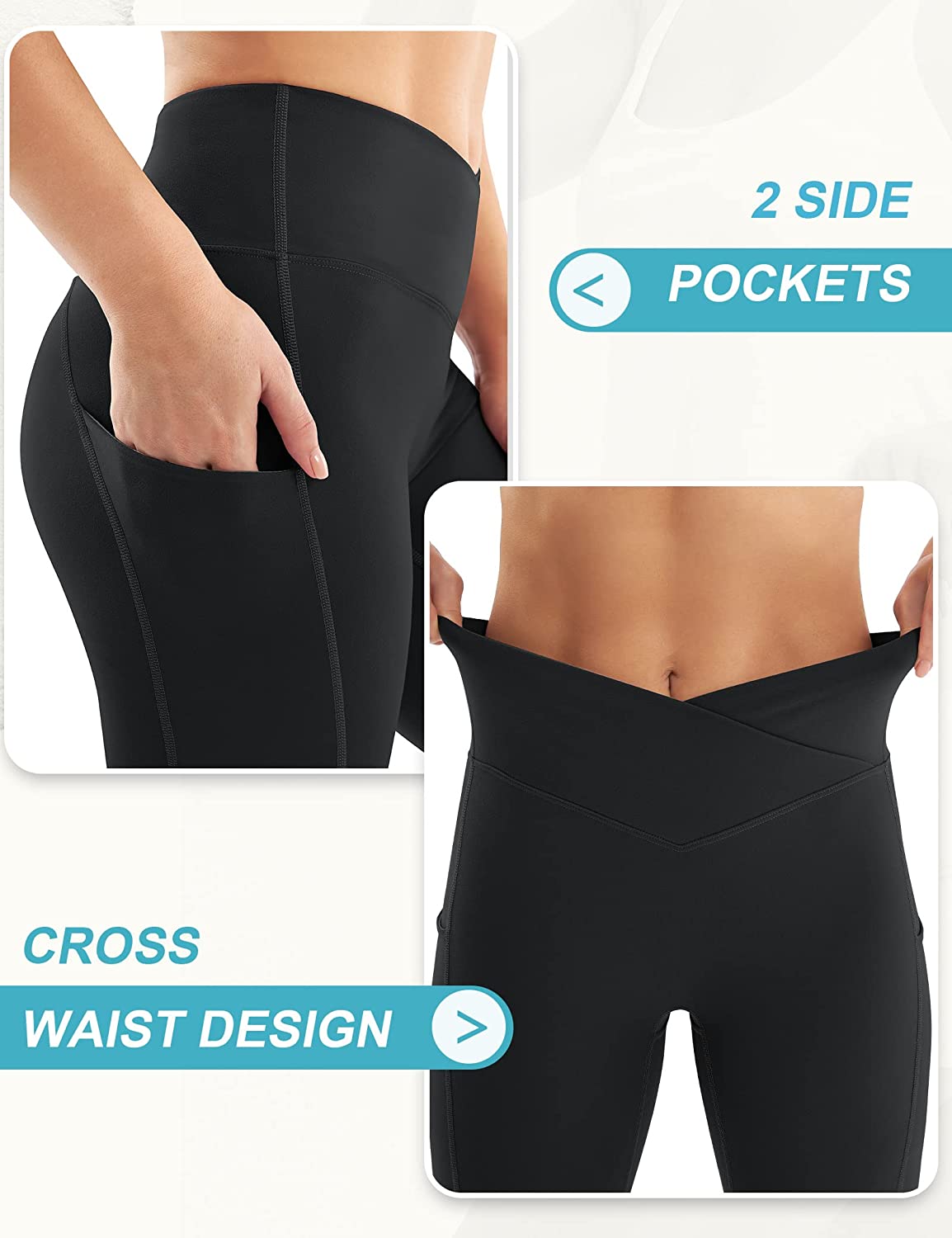 IUGA Women's Cross Waist Yoga Leggings with Pockets for Women Tummy Control Workout Leggings High Waisted Running Yoga Pants