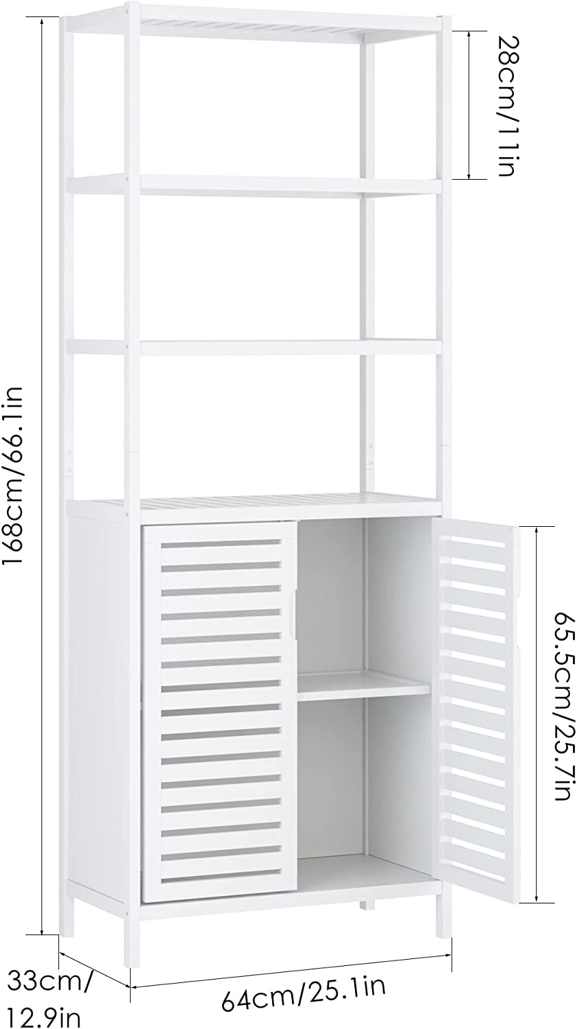 MULTIFUNCTIONAL APPLICATIONS: This bamboo storage cabinet can be used not only as a bathroom storage cabinet for towels and toiletries, but also can be served as accent furniture in living room Kitchen, such as a bookshelf, kitchen storage cabinet