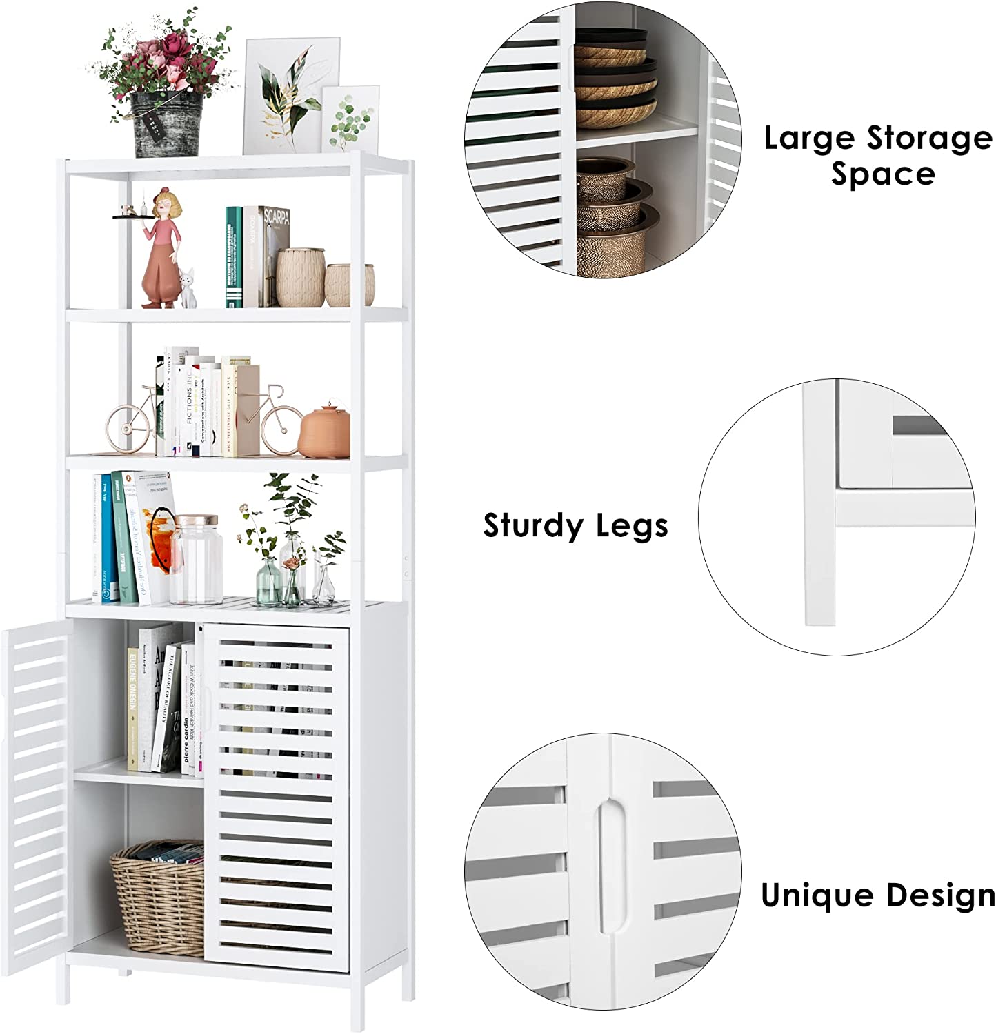 AMPLE STORAGE SPACE: This bathroom storage cabinet is an integrated cabinet with 4 open shelves and a double-door storage cabinet that provide ample storage space for your daily
