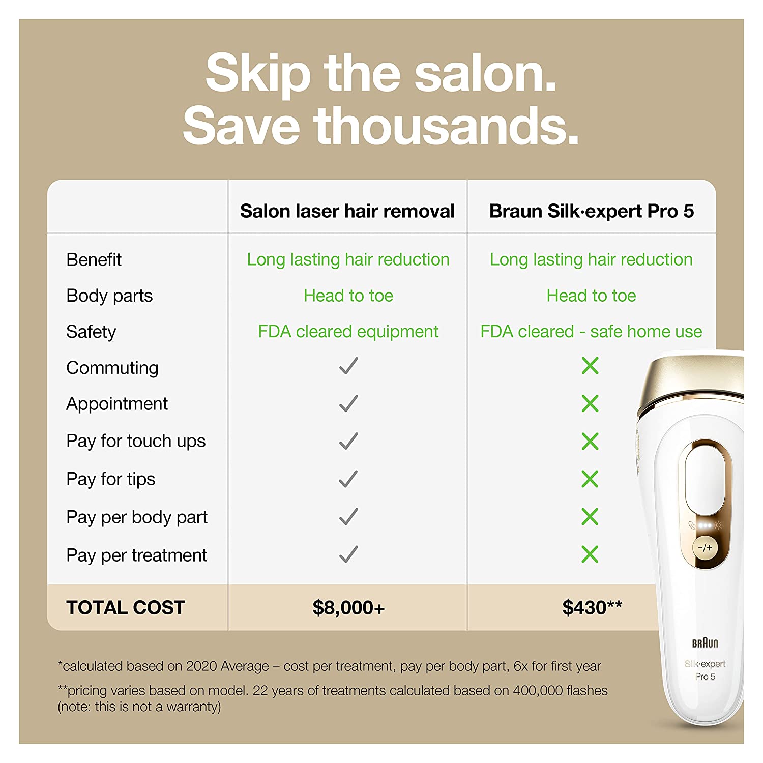 - Get up to 6 MONTHS OF SALON-LIKE SMOOTH SKIN from home. Visible hair reduction in just 4 weeks*. *74% hair reduction after 12 weekly sessions (combined value for bikini, leg, axilla). Individual results may vary.