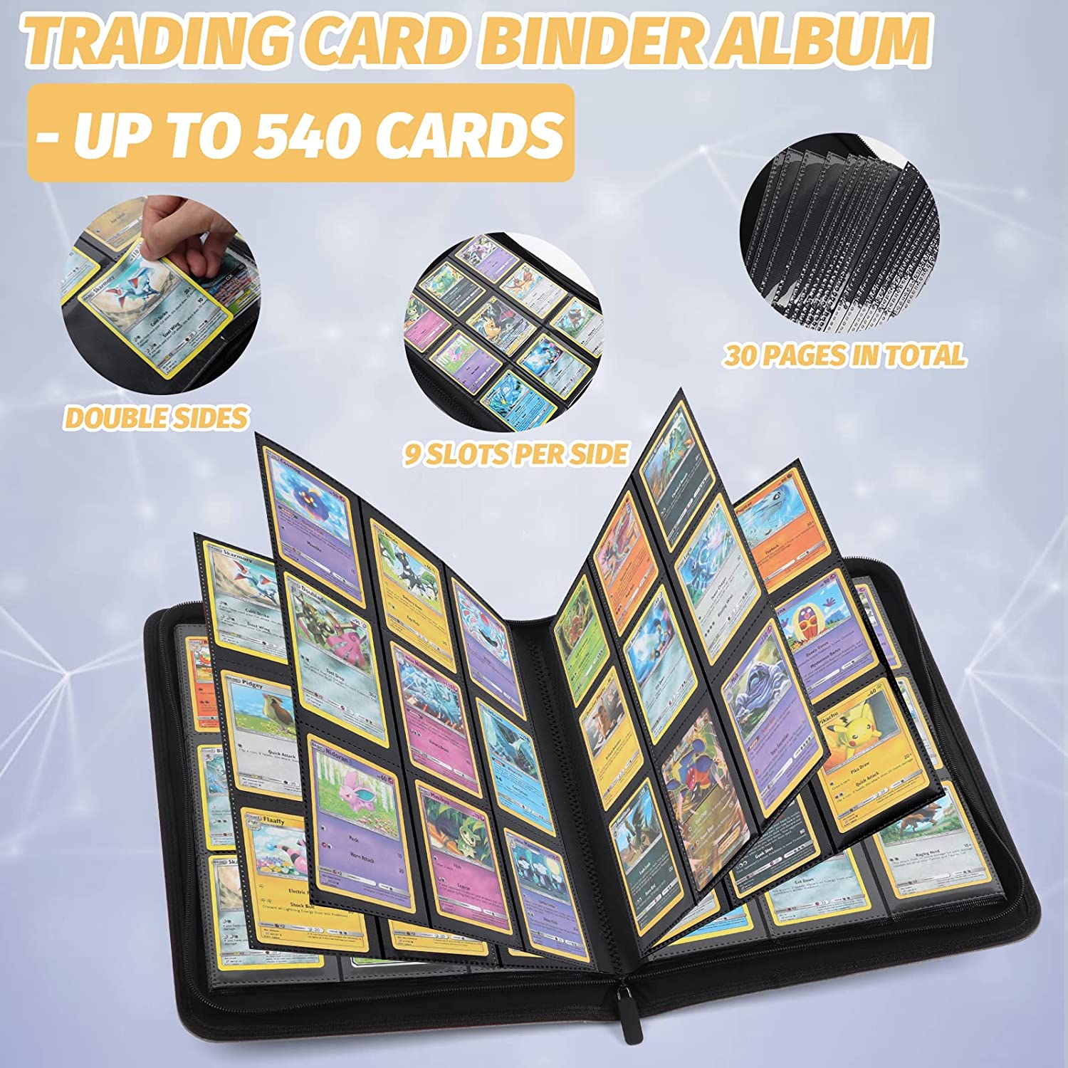 【Large Card Storage Capacity】9 pocket per page premium quality zip-u trading card binder.30 pages, It means that it can hold 540 cards,providing plenty of space to get all your cards organized.