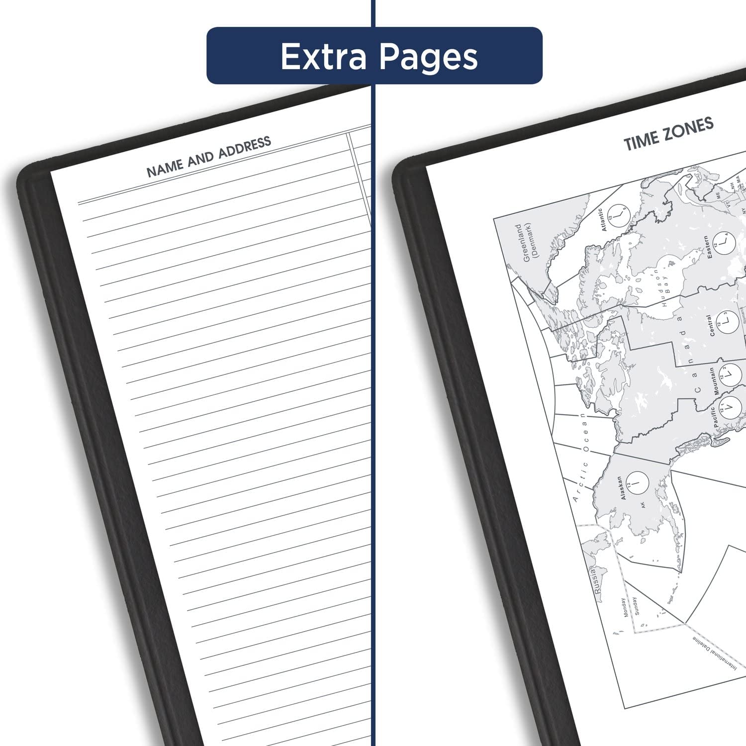 • PROFESSIONAL DESIGN - Take charge of your schedule with classic style. Planner has a black faux leather cover and twin wire binding to help keep pages secure for prolonged use.