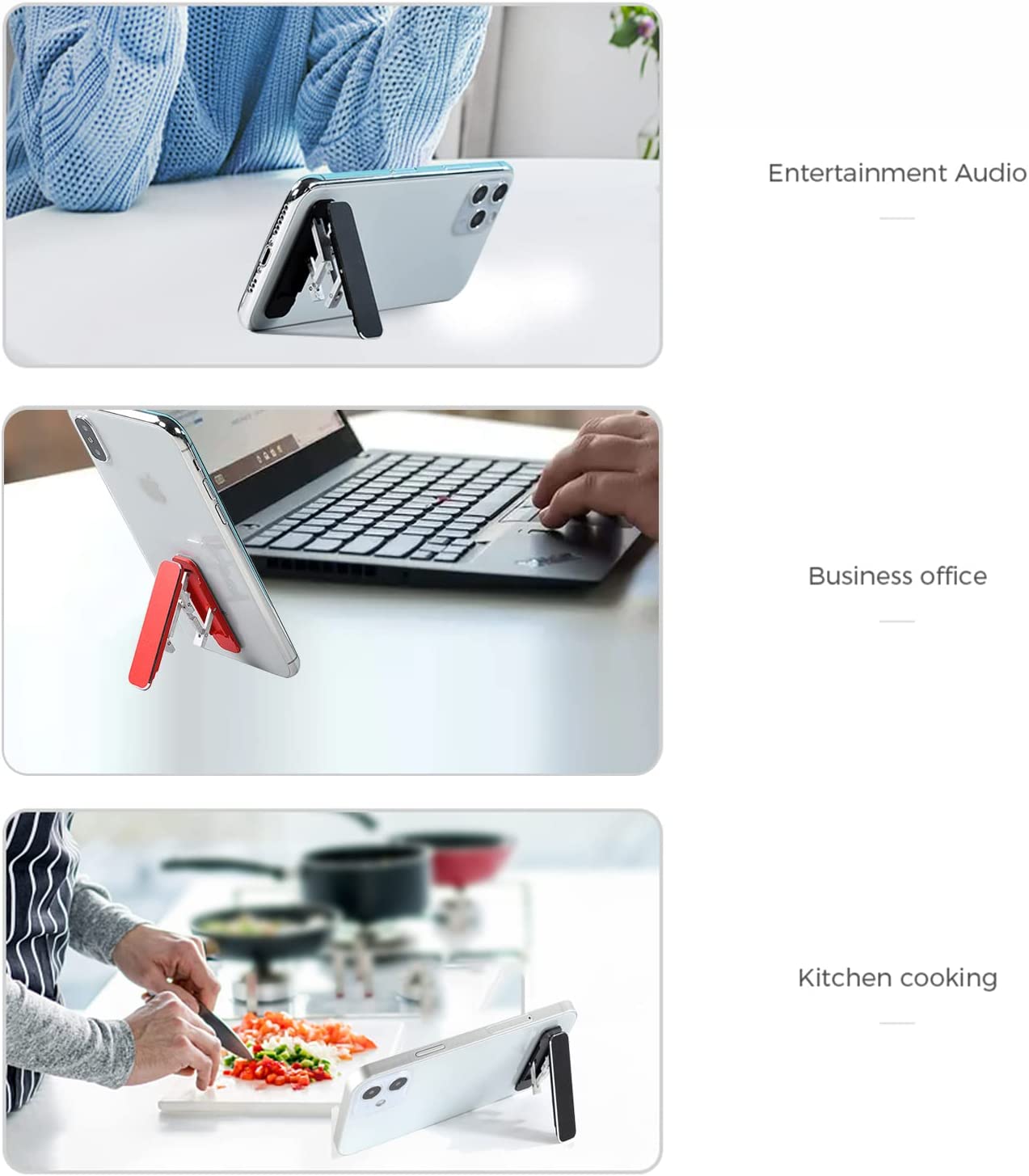Simple Installation - Make sure the surface area is flat, not curved. Be sure to clean and dry the surface area. Easily peel off the 3M protective glue and place the stand anywhere you want. There are 2 easy ways: 1. On the back of the phone or in the middle. 2. At the bottom or middle of the phone case