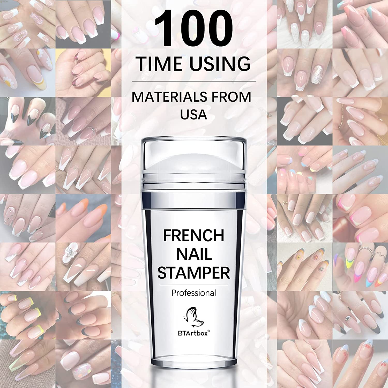 French Nail Stamper - BTArtbox French Tip Nail Tools with Nail Scraper and Replaceable Stamper Head, 100-Time Using Silicone Nail Stamper Kit for Gel Nail Polish DIY Nail Art Tools