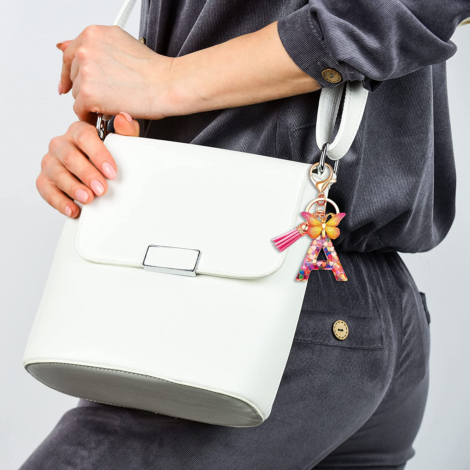 • ?【High Quality Keychain】This cute pink butterfly tassel resin letter keychain is made of high quality epoxy resin material, the key ring is made of high quality rose alloy electroplating, the resin letters are added with love sequins, very shiny, resin material High hardness, no deformation, no fracture.