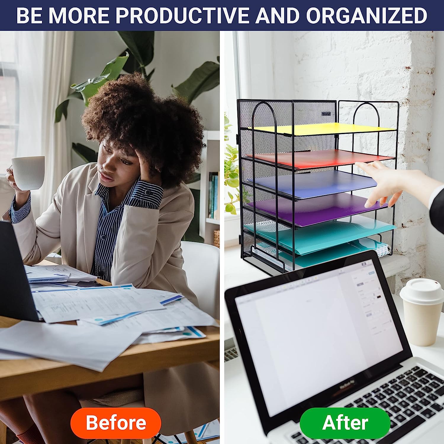 • 6 Tier File Organizer - From magazines and newspapers to work folders and reports, you can organize any document, file, or folder. The 6 separate compartments keep everything you need always at an arm’s reach, while the organizer itself never gets in your way.