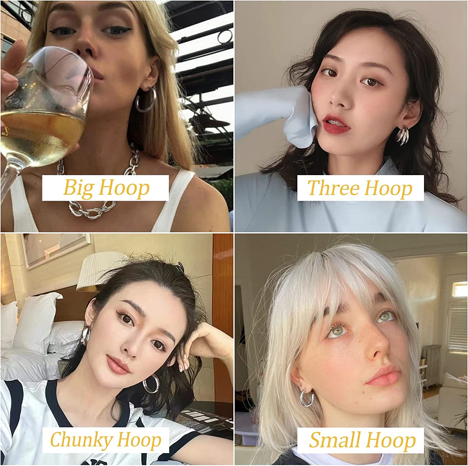 • ♥Multiple Sizes ♥ Are you in urgent need of a set of earrings that can satisfy your daily wear? This earring set comes in a variety of sizes. It can be worn alone or stacked and perfectly match your daily wear and exude your charm inadvertently.