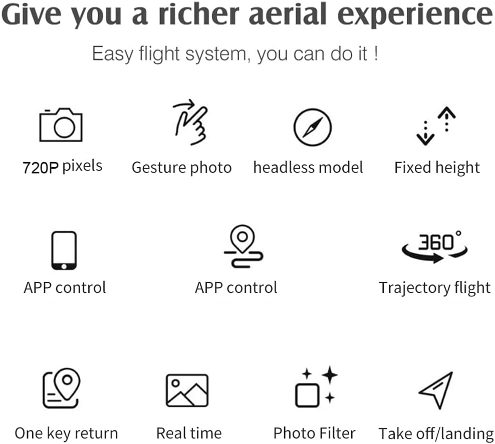 【ALTITUDE HOLD】 When you focus on shooting images, you may set your hands off the joystick and the drone still suspend in mid-air with locked altitude. A perfect drone for beginners, kids, starters, or newbies to have a easy and stable flight experience.