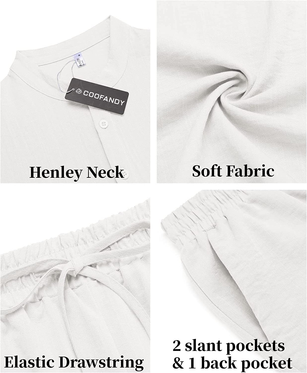 COOFANDY Mens 2 Pieces Linen Set Henley Shirt Beach Short Summer Outfits