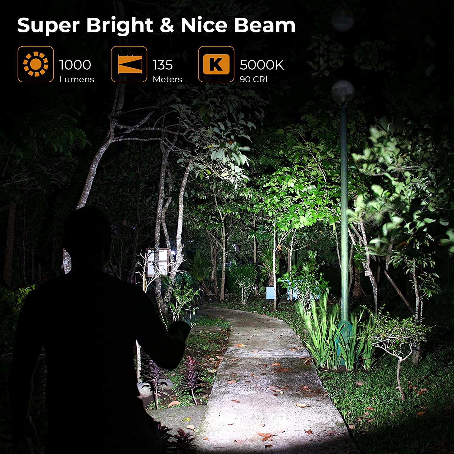 • Mini & Powerful: as small as your thumb finger, the tiny flaslight gives out max 1000 lumens, lighting a large area as football field, beam reaches out 135 meters max. You can attach it with your key ring, use it as edc tool for dog walking, jogging etc.