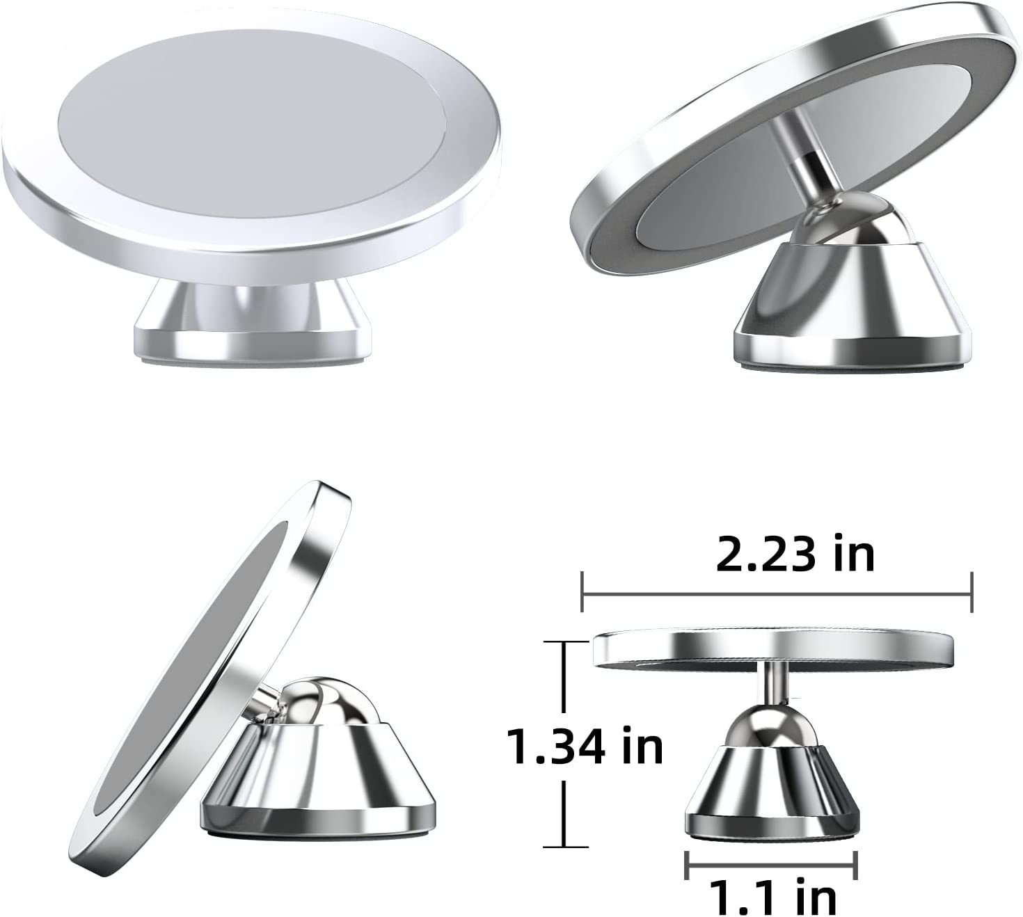 Magnetic Phone Holder for Car, [ 2 Groups Super Strong Magnet ] [ 360° Rotation ] Universal Dashboard Car Mount Holder Compatible with All Smartphones (Silver)