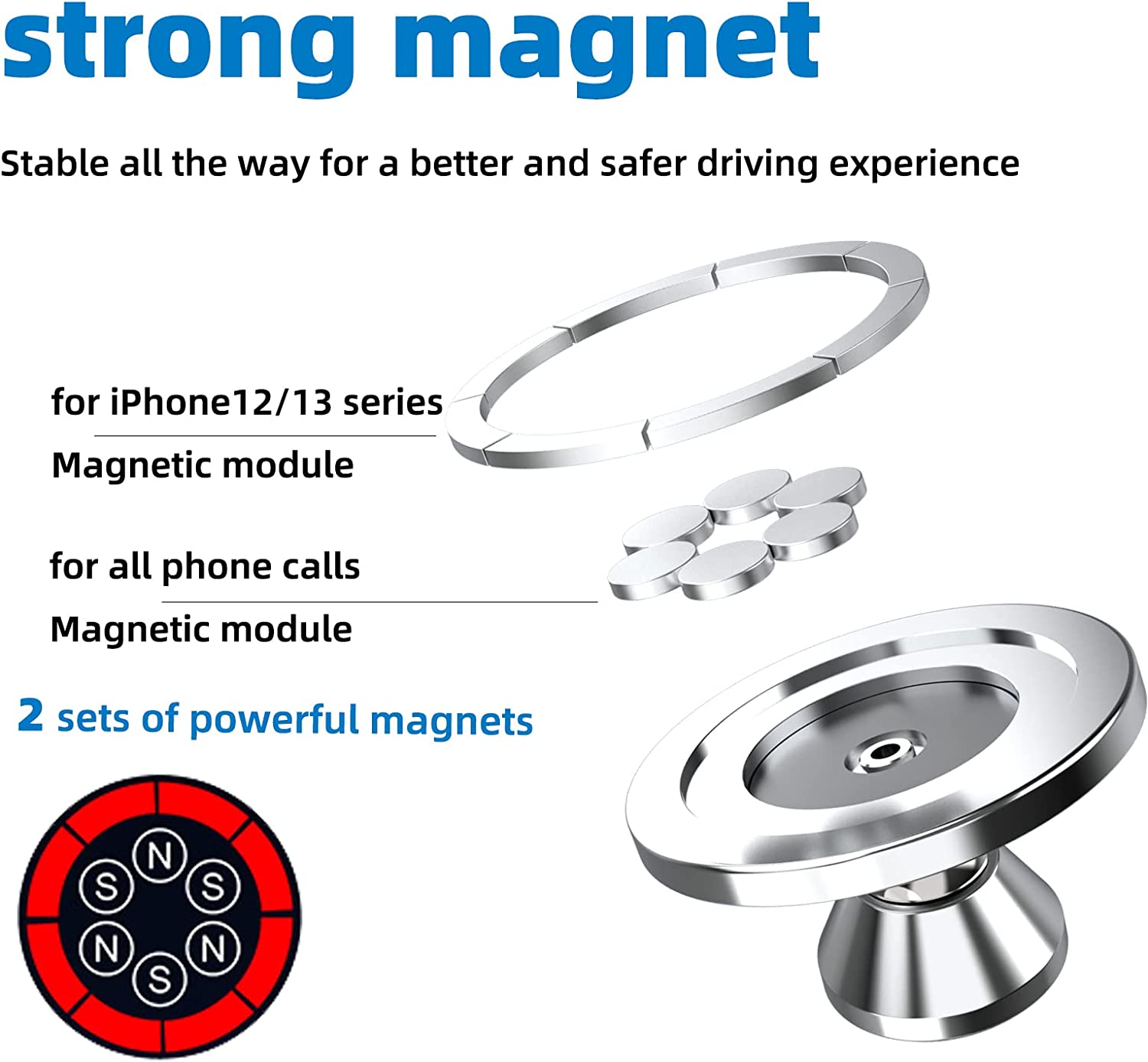 • [2 sets of magnetic attraction modules]: The outer ring is specially designed for iPhone 12/13/14 series mobile phones. It can be directly attached to the mobile phone without matching the magnetic attraction sheet.The inner ring is composed of 6 powerful magnets, which can be compatible with most Magnetic sheet on the market.