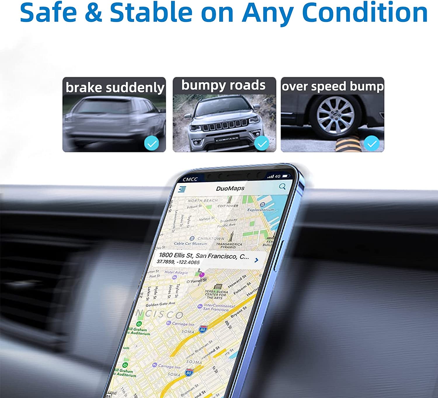 • [STRONG MAGNETIC] This powerful magnetic phone holder can create a powerful attraction that firmly supports your device while allowing you to drive without distraction.