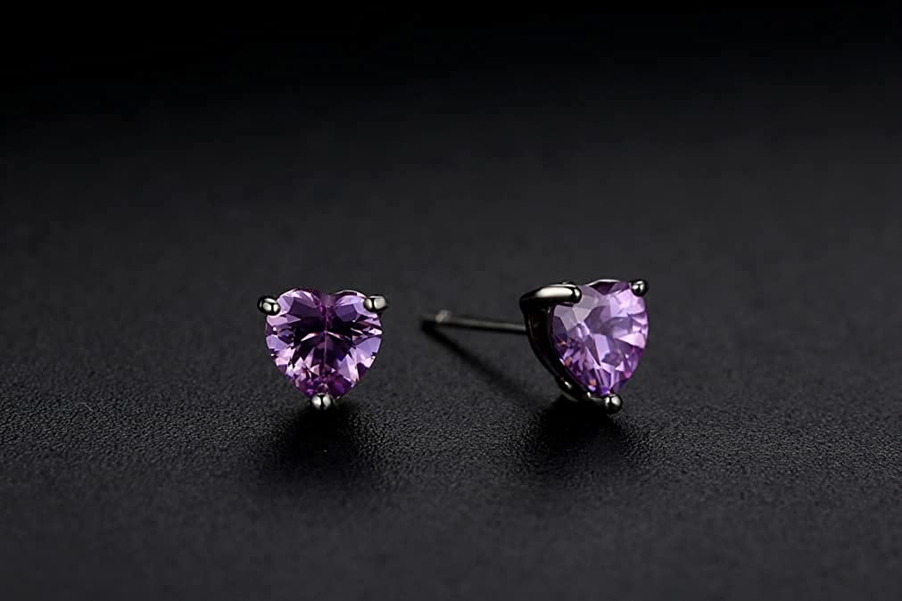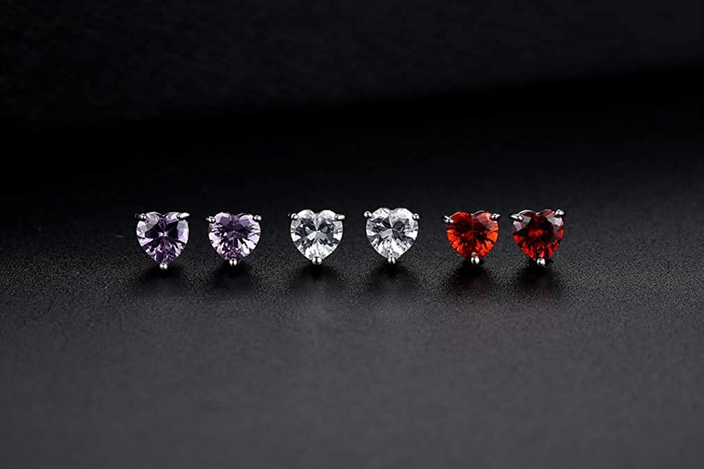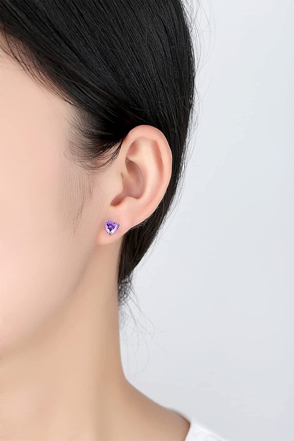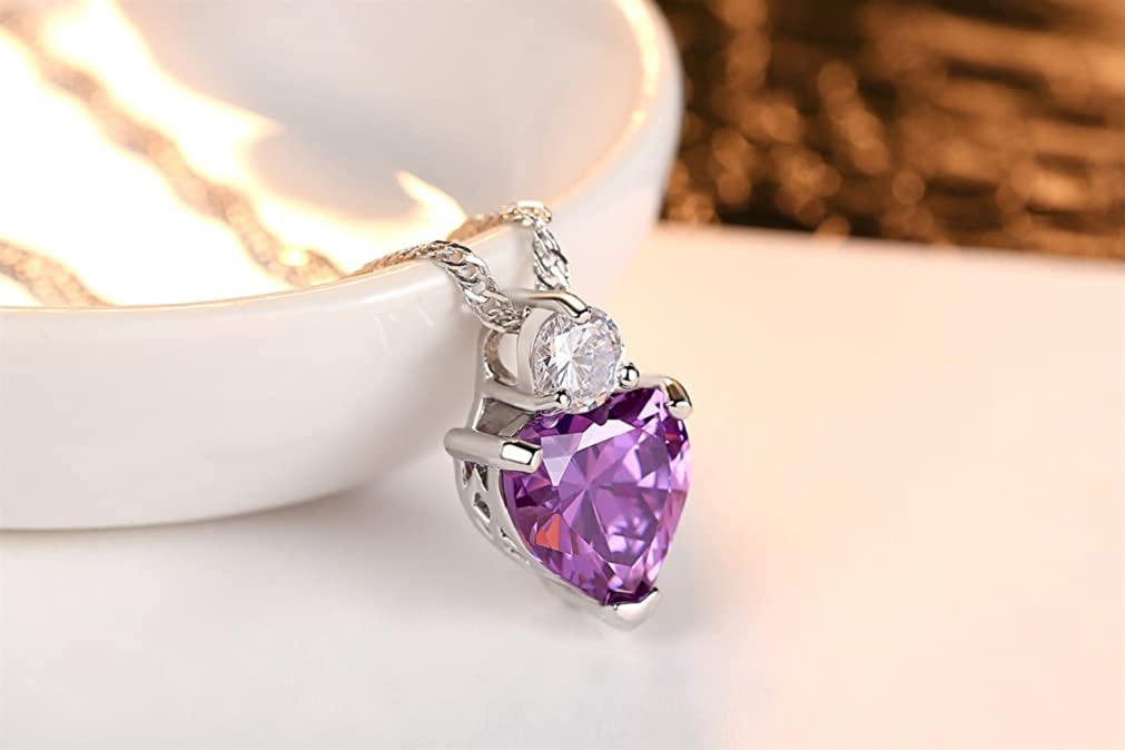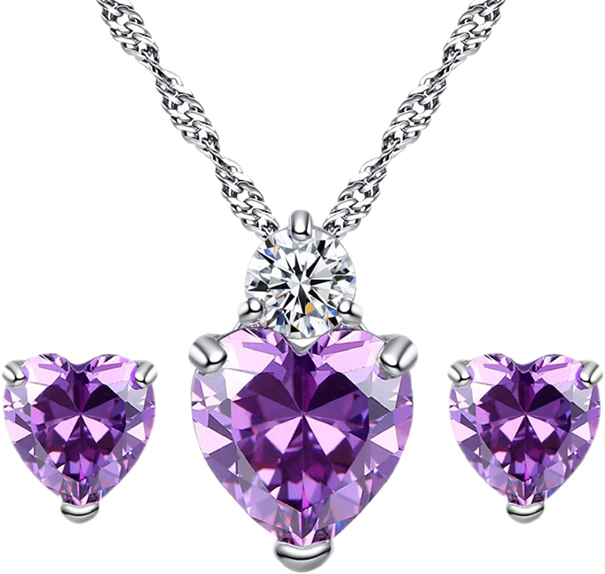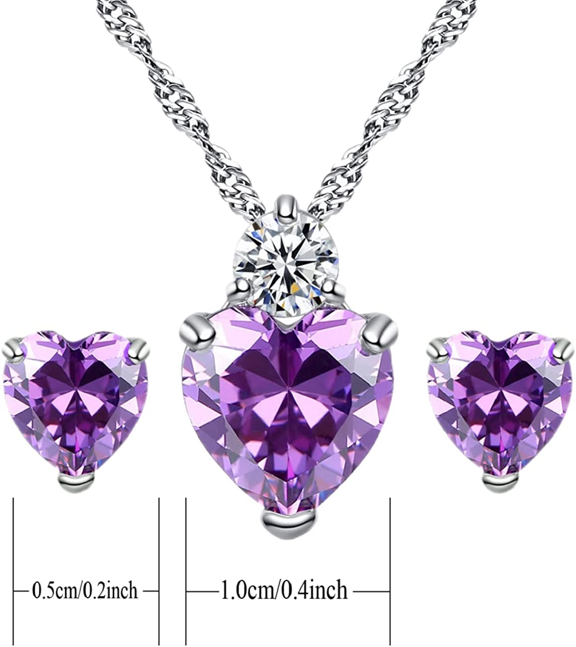 Jeolory 925 Silver Plated Shiny Fashion Cute Crystal Rhinestone Love Heart Pendent Necklace Stud Earrings Jewelry Set for Women Lady Girl (Light Purple)