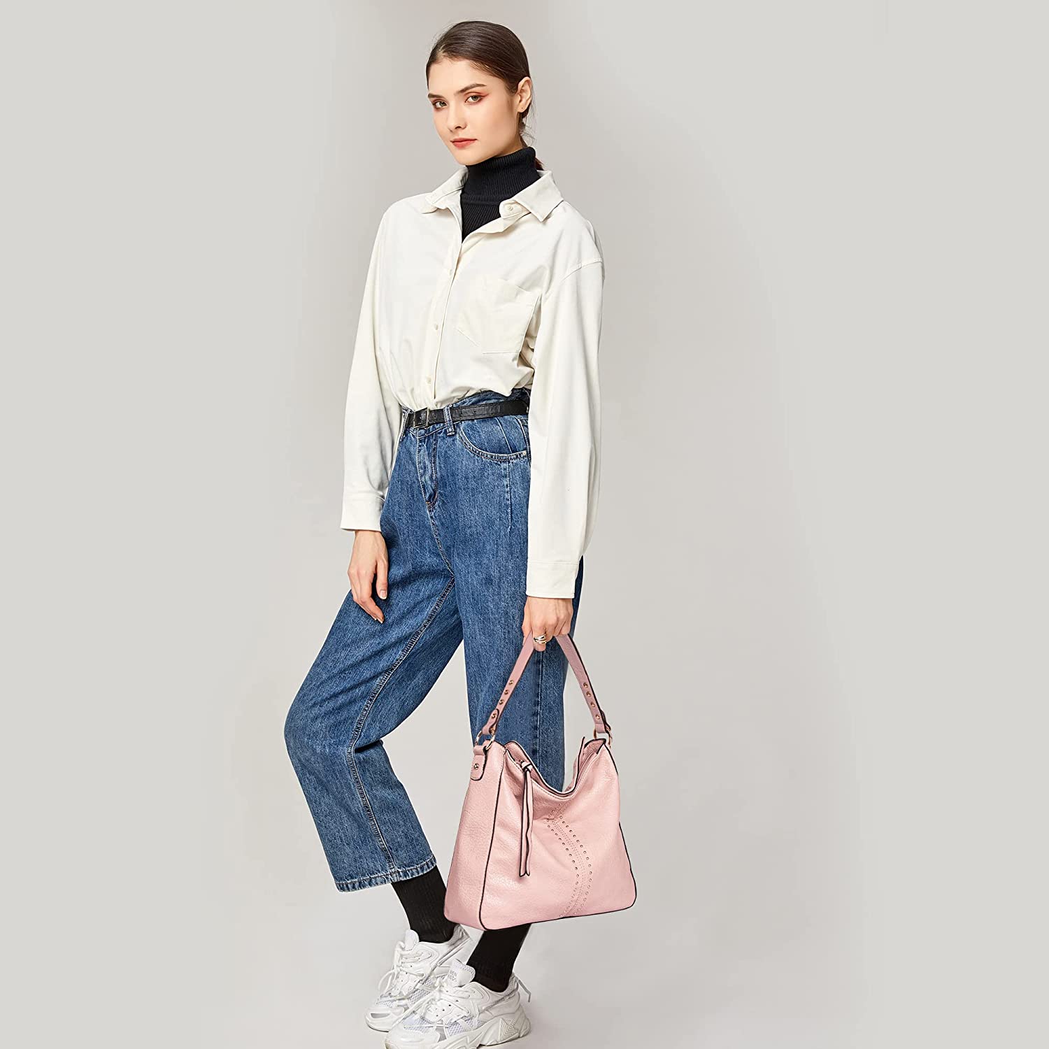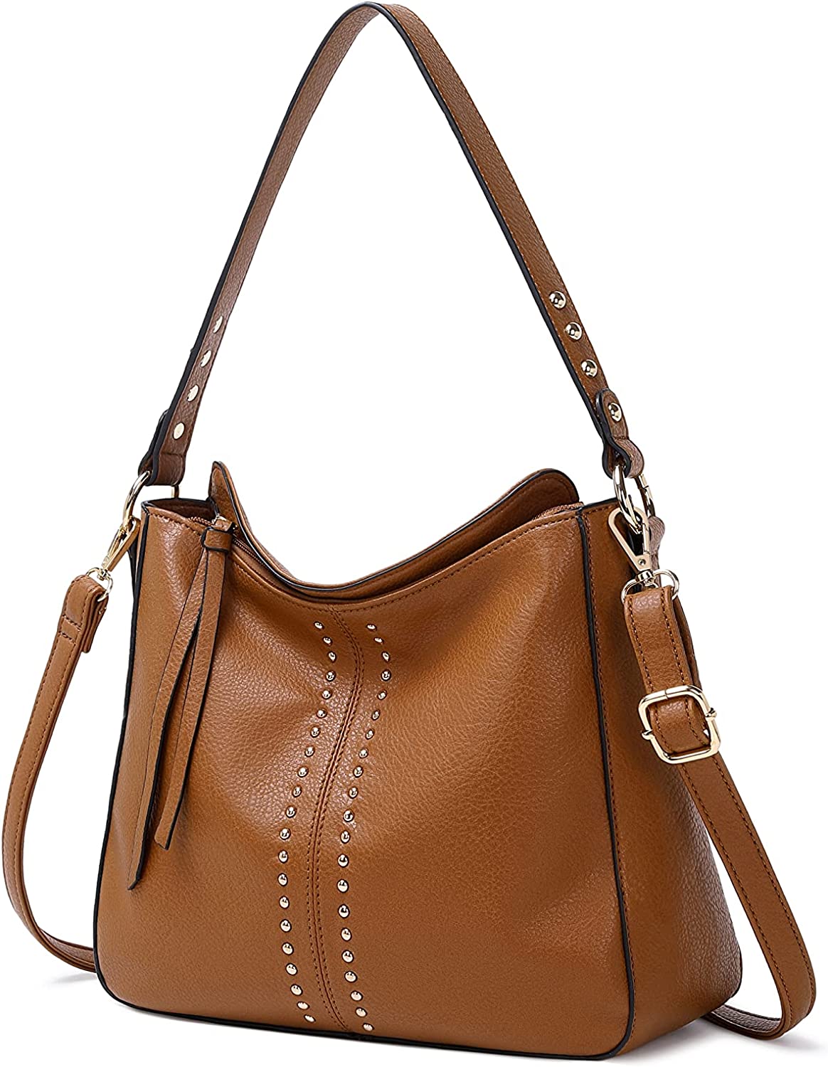 • Vegan Leather - The Montana West Hobo Purse is made of vegan leather with durable lining and a metal stud design in the middle of the bag, making this shoulder bag stylishly soft and durable, and a prime choice for women's daily life.